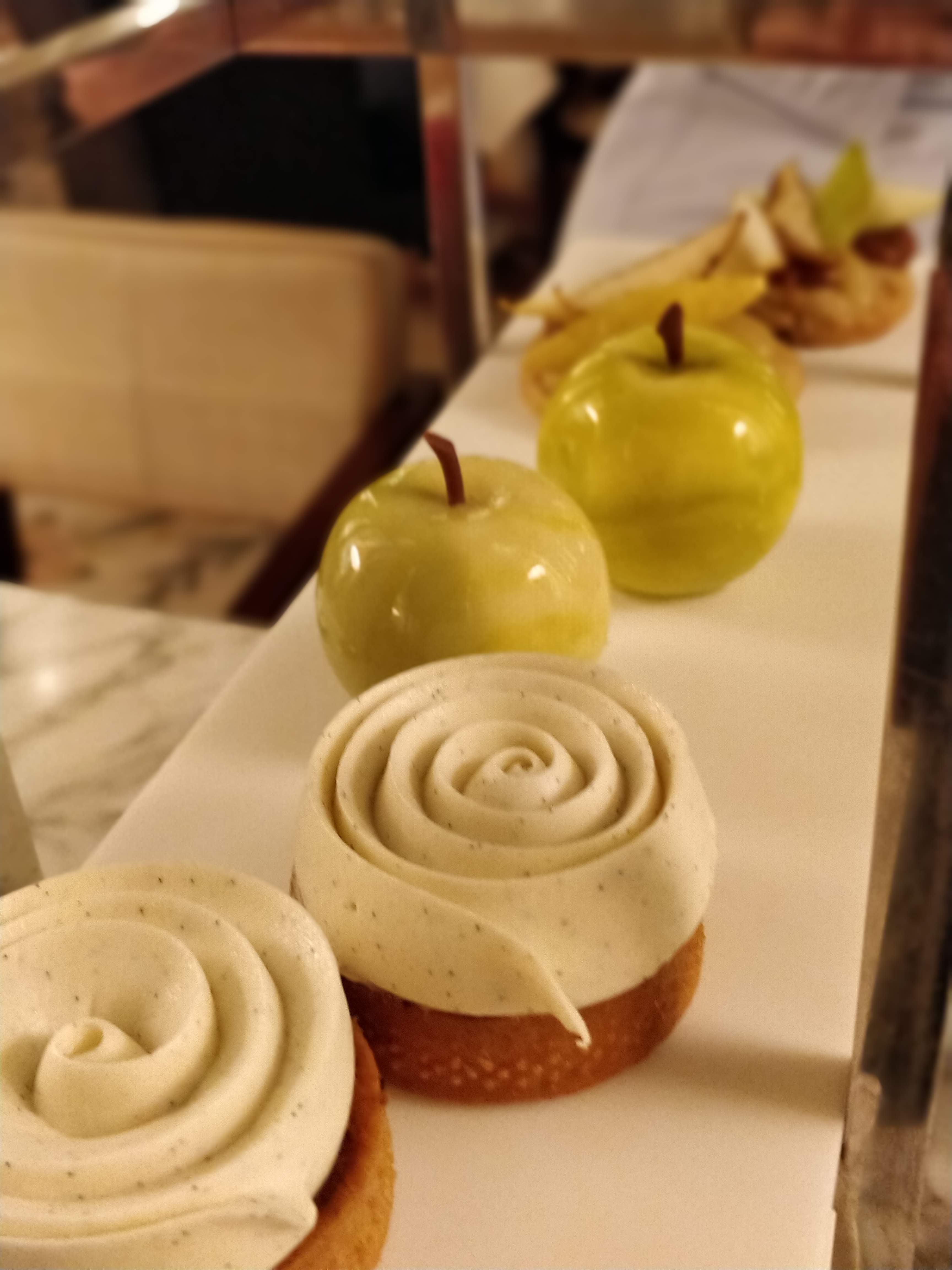 Je n'ai pas été époustouflée par les fruits sculptés du célèbre Cedric Grolet. C'était bon, mais cette alliance poire-tonka n'était vraiment pas exceptionnelle. Bon service et le reste des pâtisseries étaient vraiment réussies.