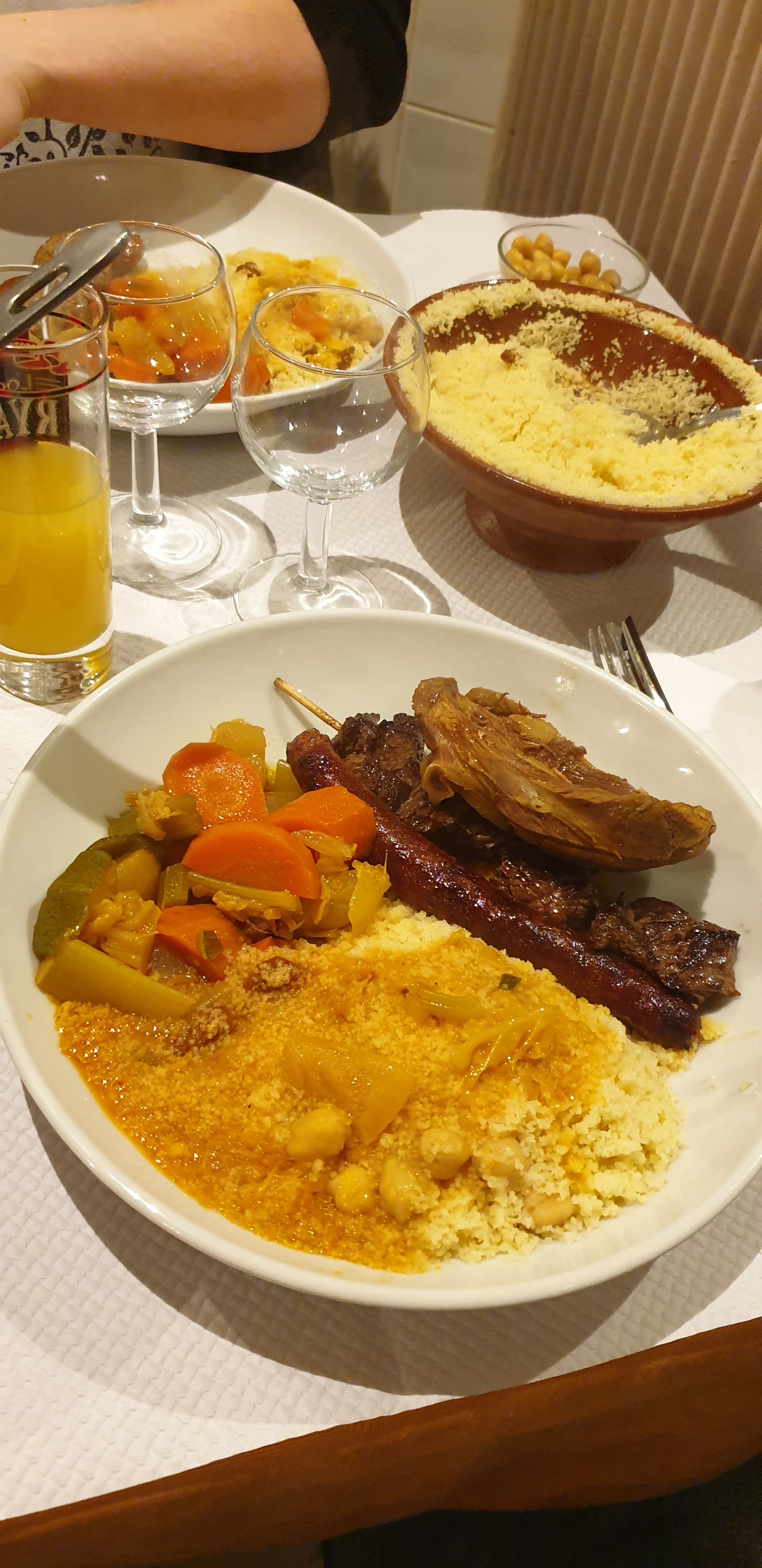 Très bon couscous, riche en légumes et à volonté, thé à la menthe prolongé d'eau chaude une fois terminé, viande savoureuse, le tout pour 30 €... un must @