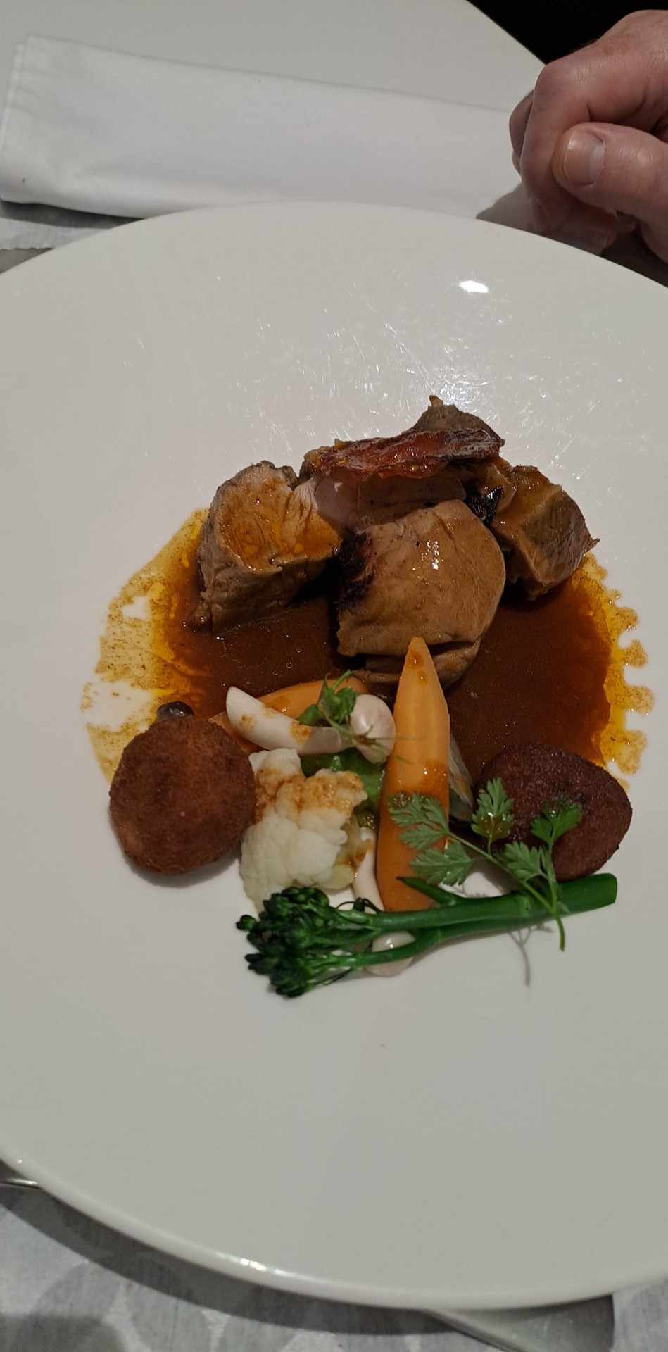 Beau restaurant, très bon accueil, jolie carte, cuisine raffinée mais un peu fade pour mon goût personnel.
