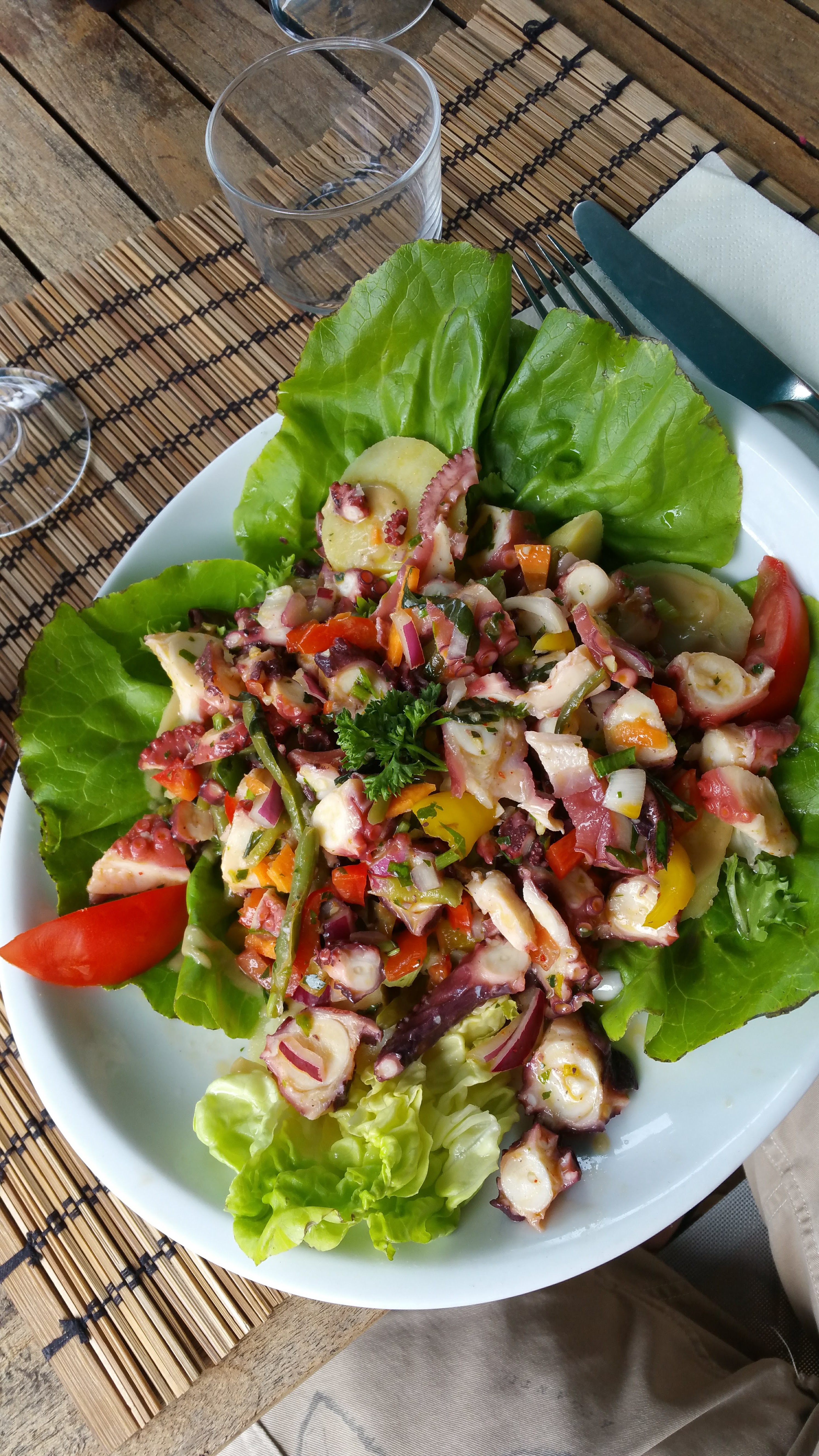 Petit havre de paix Accueil le matin par le cuisinier super sympa , j’y suis retourné le lendemain pour l’aïoli, délicieux , petite attention. A l’apéritif , bref je recommande ce joli petit îlot de paradis