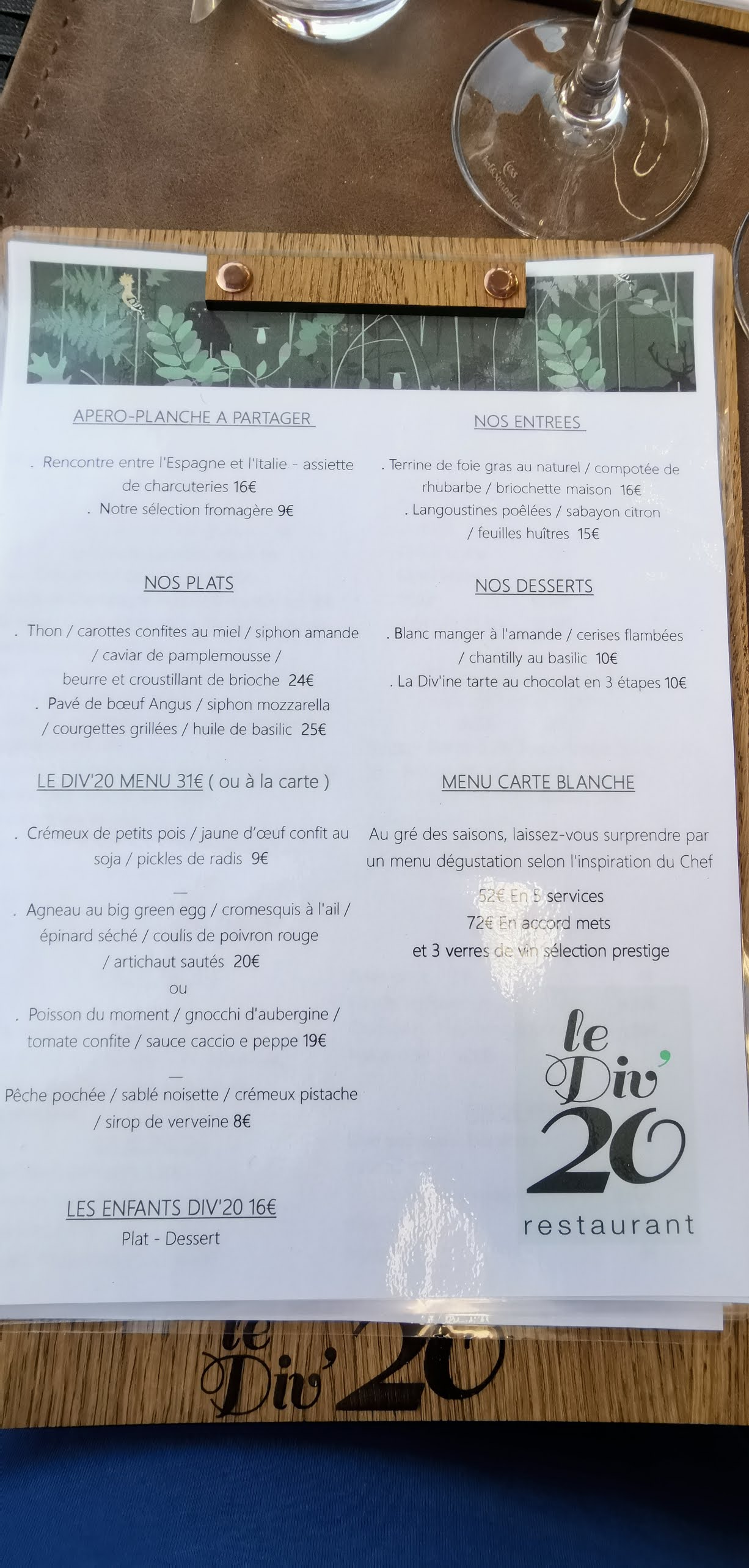 Escale le 12/02/2020 a AVON. Notre hôtel ne faisant pas restaurant, nos recherches se portent sur le Div'20. Réservation faite, notre chienne bien accueillie nous découvrons! Une excellente découverte, un repas délicieux, un service impeccable, nos sommes repartis ravis! Nous passons a nos amis Rabelaisiens cette adresse! Merci