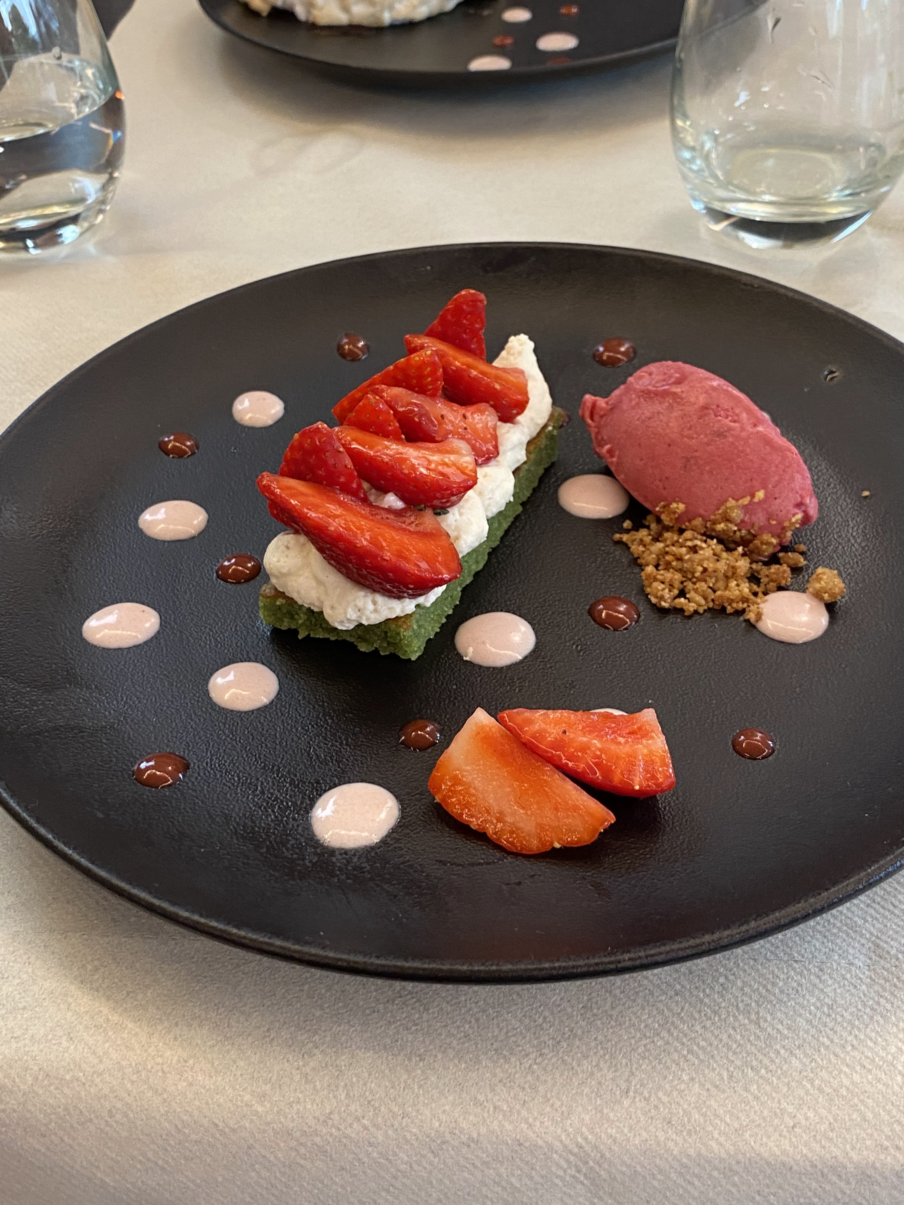 Correct mais vraiment sans plus. Déco impersonnelle et froide, viande commandée saignante et servie à point. Le dessert rhubarbe/fraise sauve le repas. Ne vaut pas le détour.