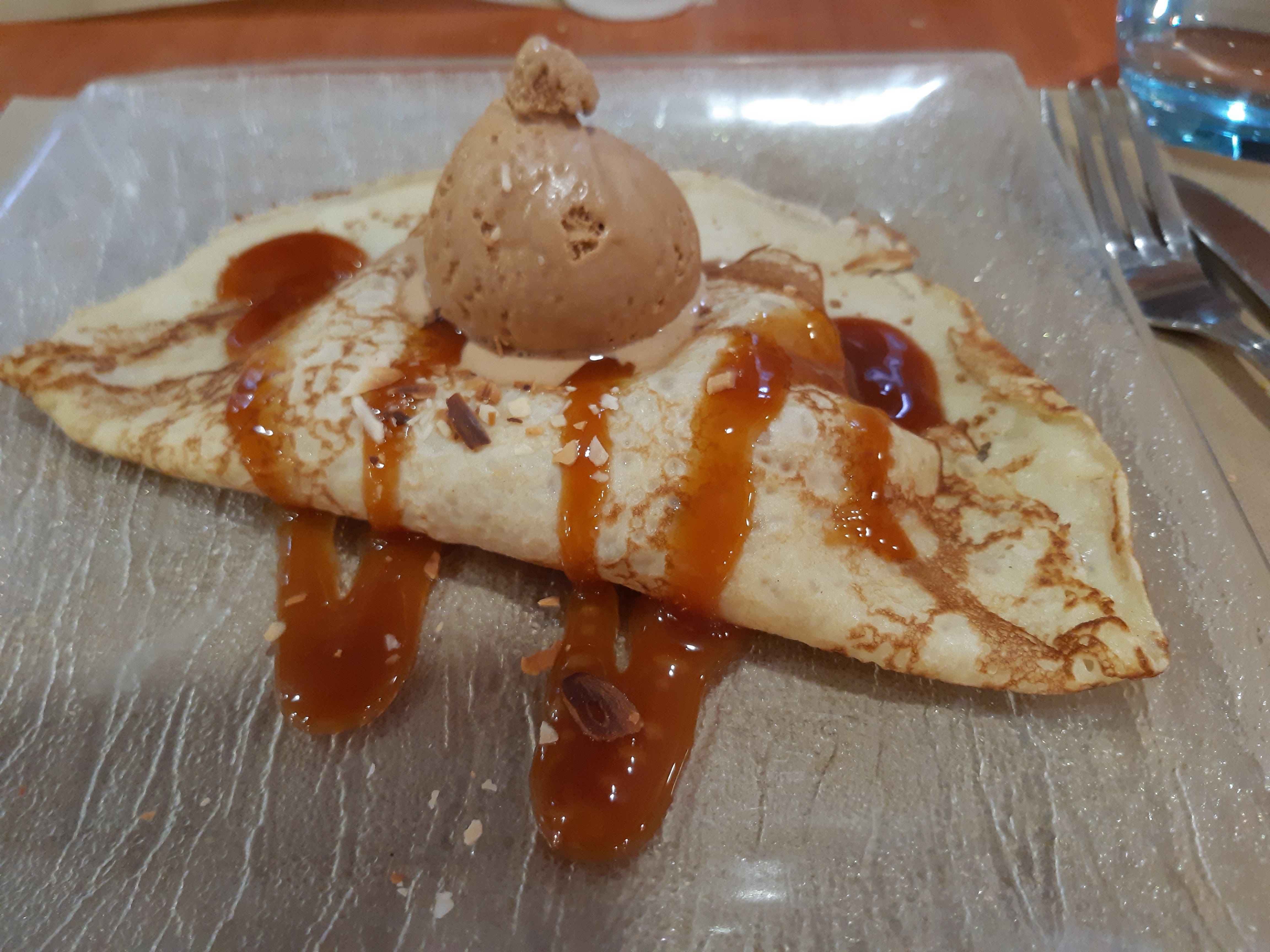 Nous y avons été ce midi, avons demandé si il y avait de la place pour 2 vers 13h45, on nous répond oui avec un air pas aimable. Nous nous installons en terrasse et au bout de 20 mn nous partons car personnes ne nous a apporté la carte. Endroit à éviter si vous voulez être accueillis avec le sourire. Nous sommes allés plus loin de la rue touristique vers la vieille ville et avons trouvé une crêperie très accueillante.