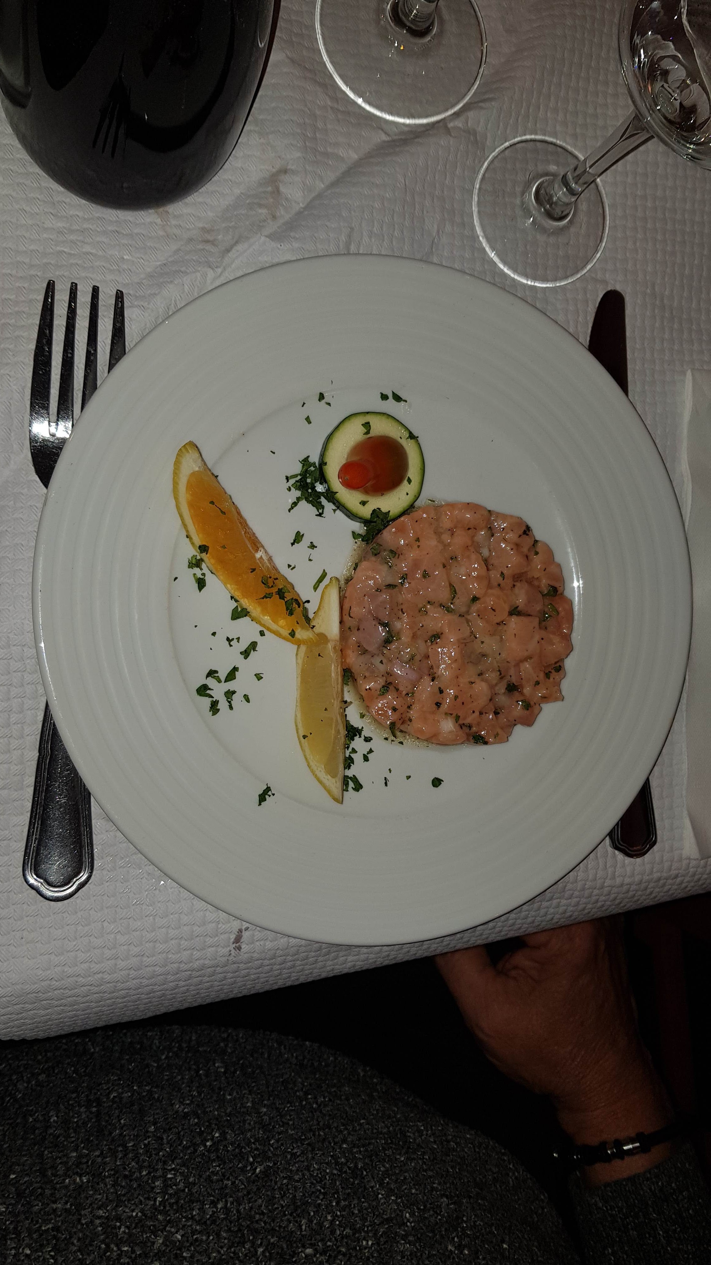 Le tartare est insipide ( poisson fumé à le goût d'eau comme si il était surgelé), la raie était trop cuite et les desserts corrects.