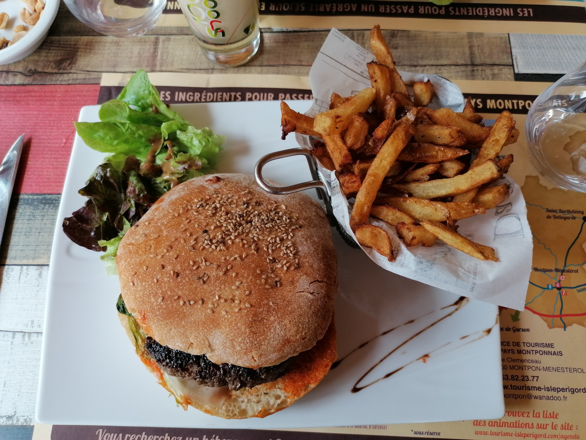 Cadre agréable, service basique, burger perigourdin décevant car assez peu garni sauf par le pain. Salade perigourdine correcte. Sur le modèle plus artisanal et accueillant de la région, on s'attendait à mieux.