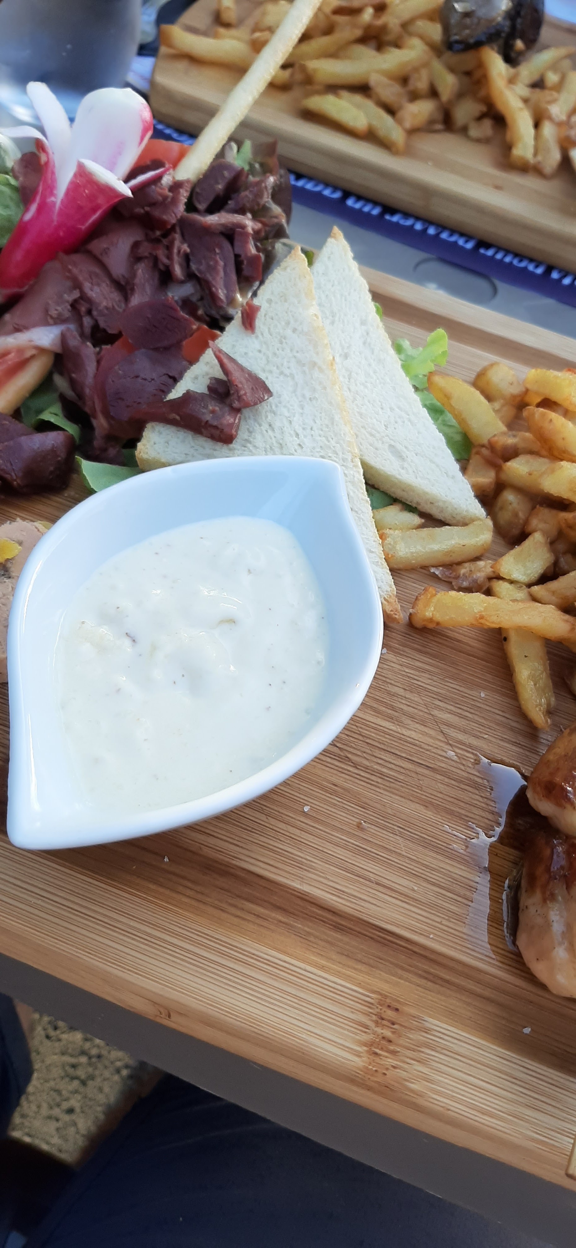 Bel endroit et bon repas. J'aime beaucoup la formule de la planche repas thématique. Juste un conseil ...il faudrait une lingette rince-doigts après les crevettes.