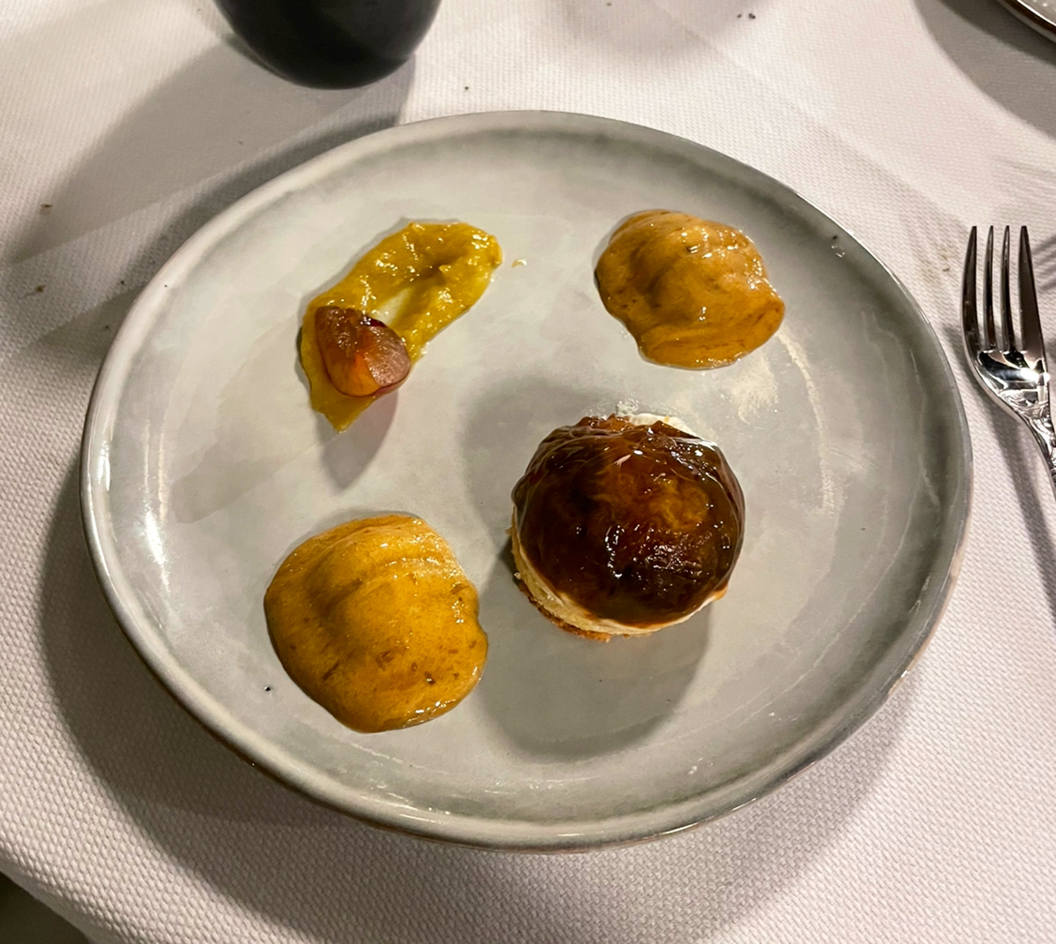 Nous avons passé un repas savoureux à deux, entourés d’une équipe attentive, bienveillante et souriante (même sous les masques!). Les plats étaient excellents (veau et saint Jacques) et servis en quantité raisonnable, de l’entrée au dessert. Bref, rien a redire, si ce n’est que ça donne envie d’y revenir ..