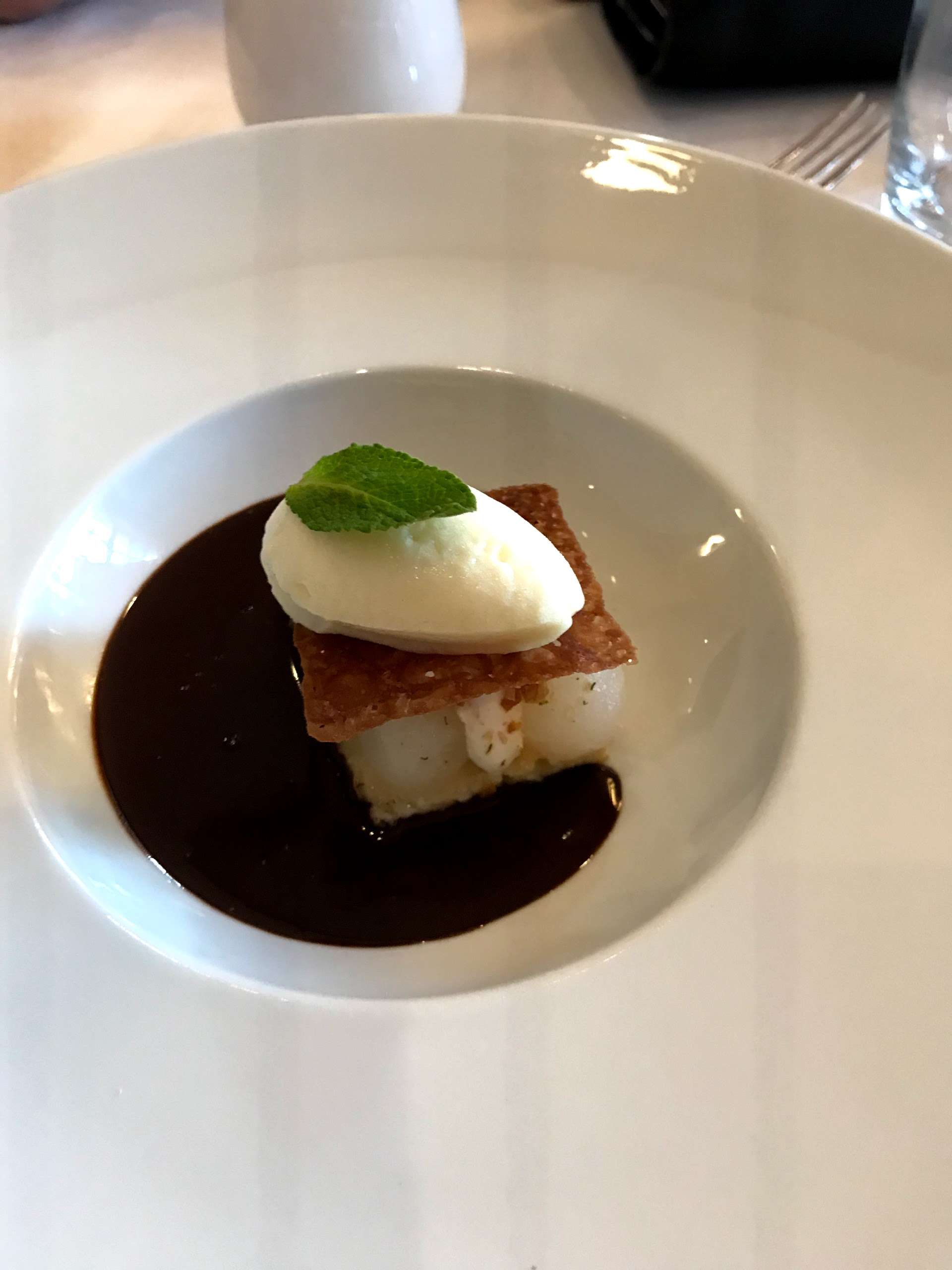 Grand choix de champagnes, service à la hauteur, desserts raffinés, entrées influencées par les saveurs asiatiques pas toujours de bon aloi.