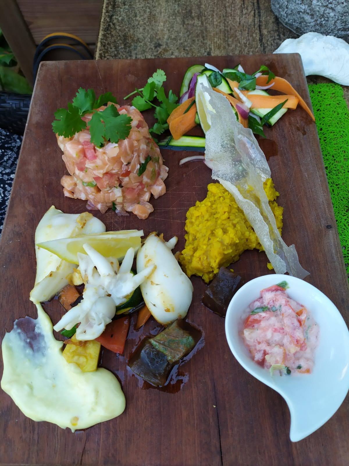 Terrasse magique, on se croirait ailleurs dans un pays exotique ! Cuisine copieuse , d'inspiration asiatique qui fait voyager, très bon rapport qualité prix. Service efficace, souriant et la propriétaire tout sourire au top...BRAVO !!!