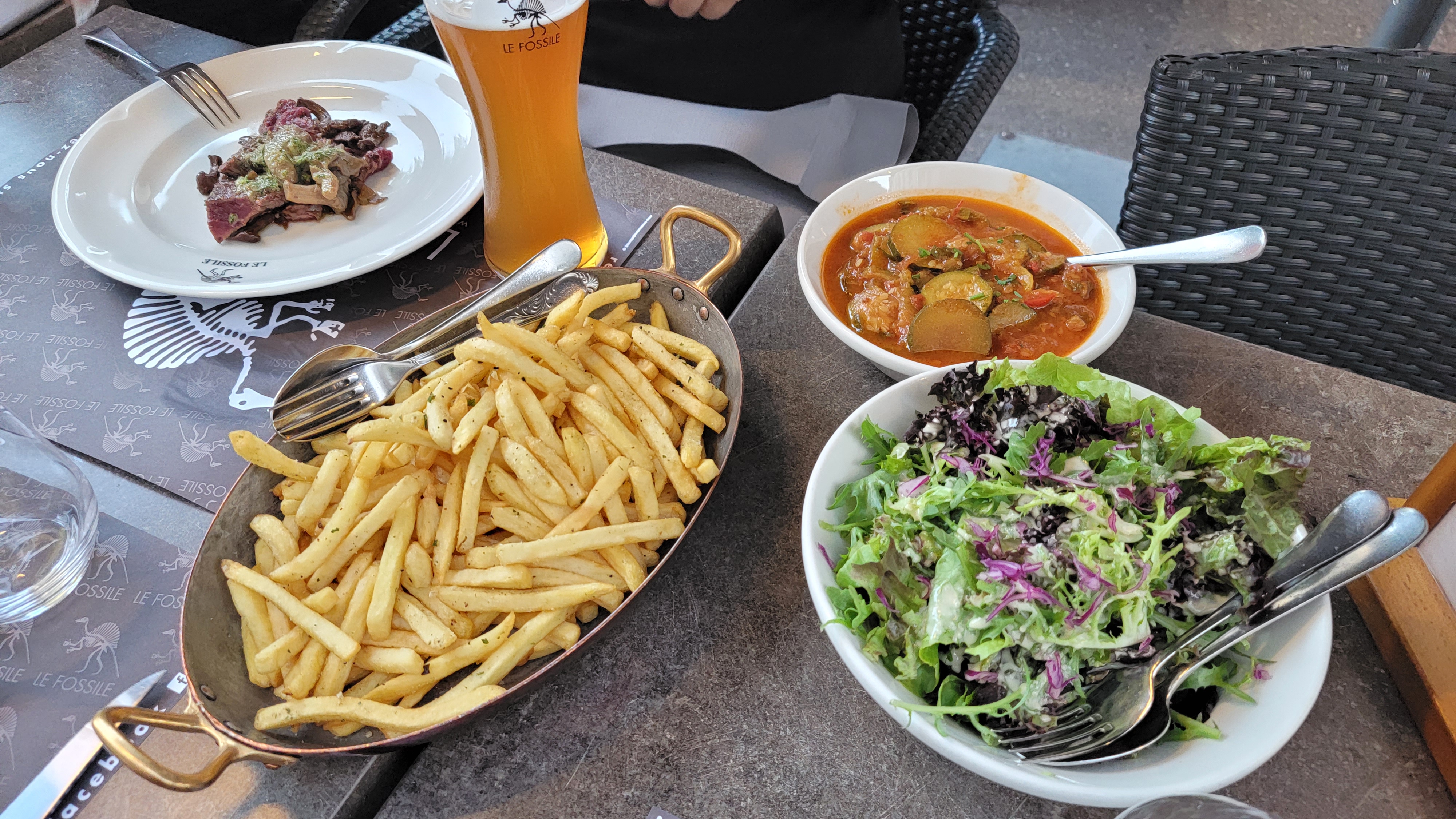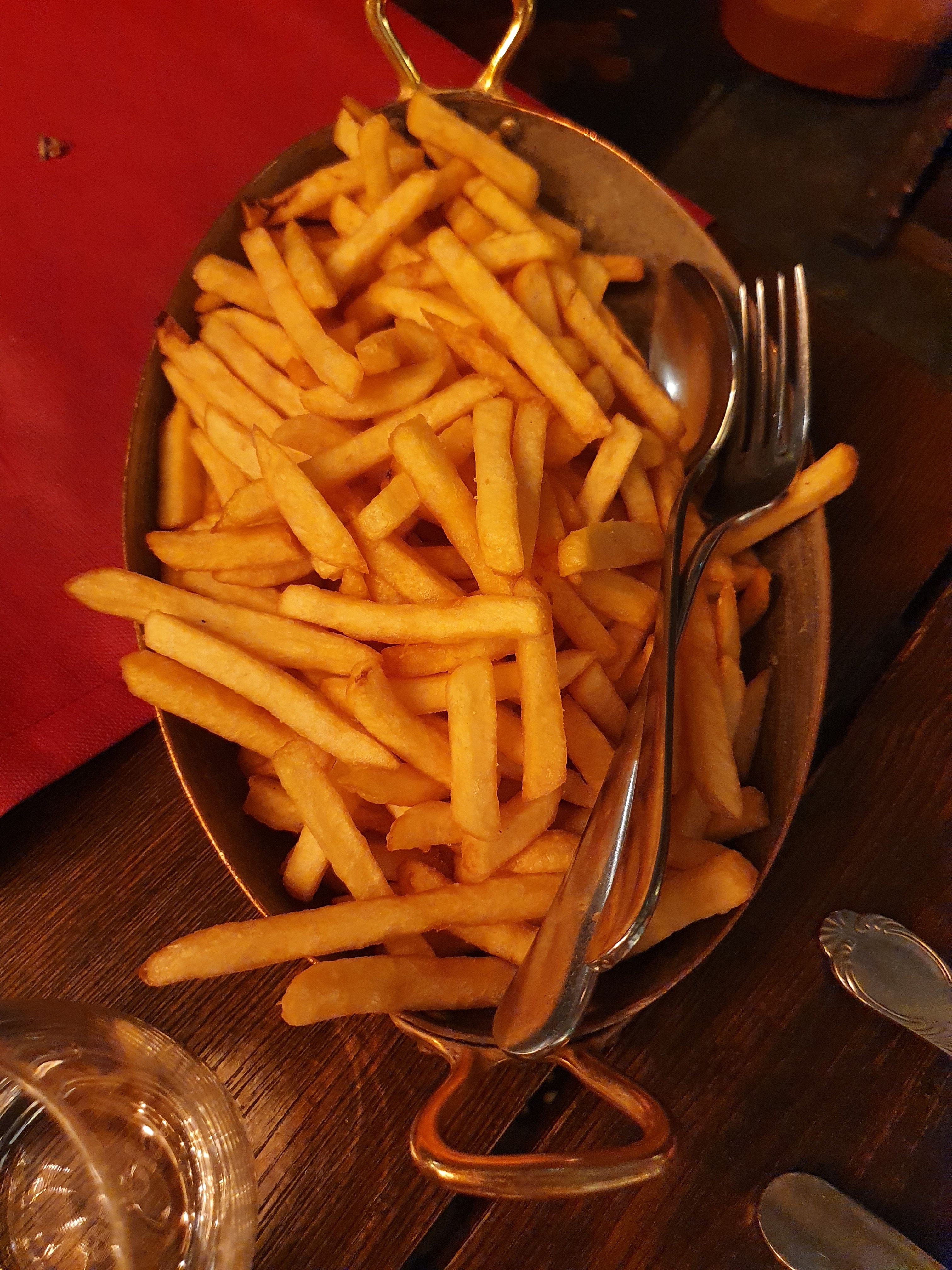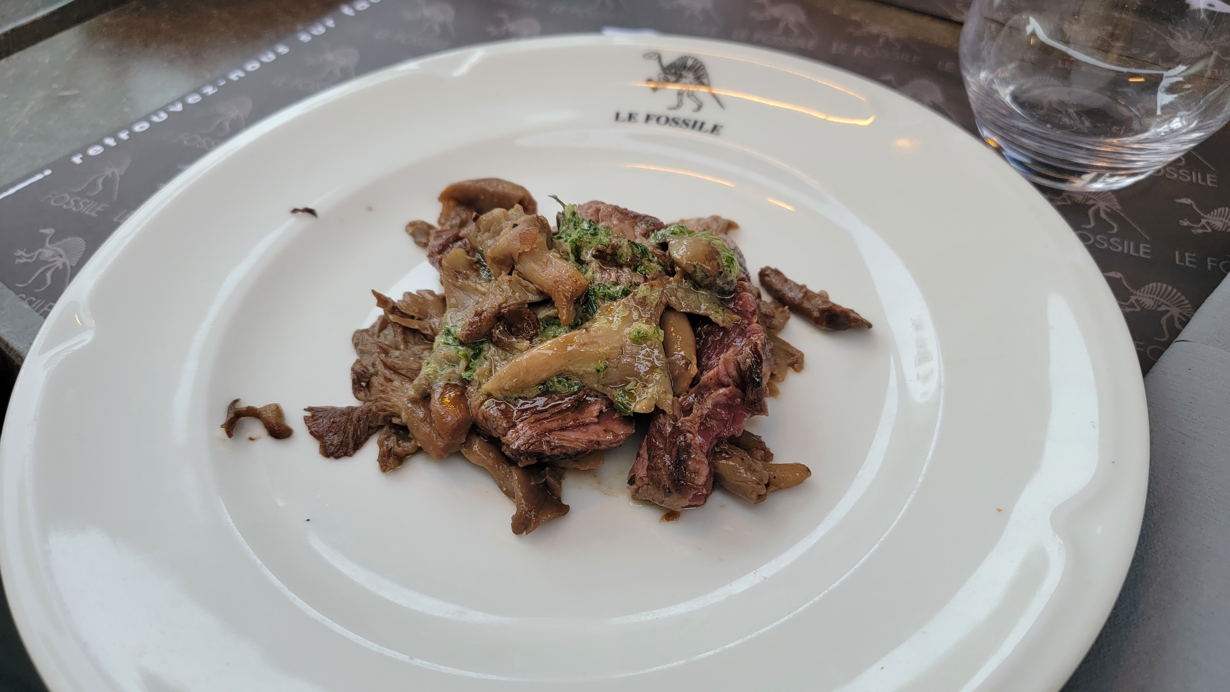 Le Fossile, c'est l'assurance d'avoir un onglet à l'échalotte excellent et coupé devant vous. Nous avons passé une très belle soirée, et ce fut aussi grâce à Carole, notre serveuse attitrée, dont les marques d'attention ont été au top. J'ai oublié de prendre de fondant au chocolat en photo 😬 : il est tout simplement exceptionnel ! Plus qu'un petit effort à faire sur les frites 😉