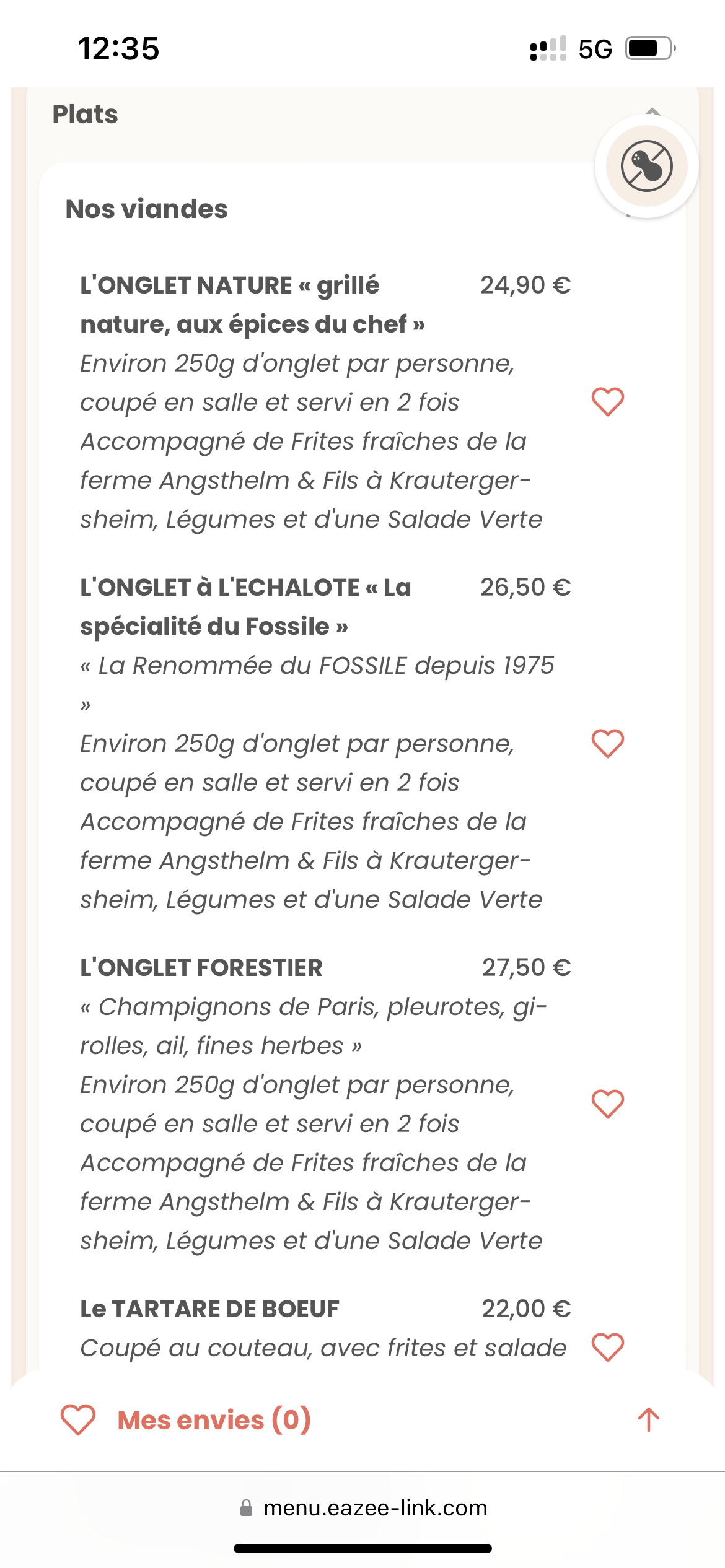 Le menu st valentin ne vaut pas le prix payé Heureusement que l'onglet est toujours aussi bon.