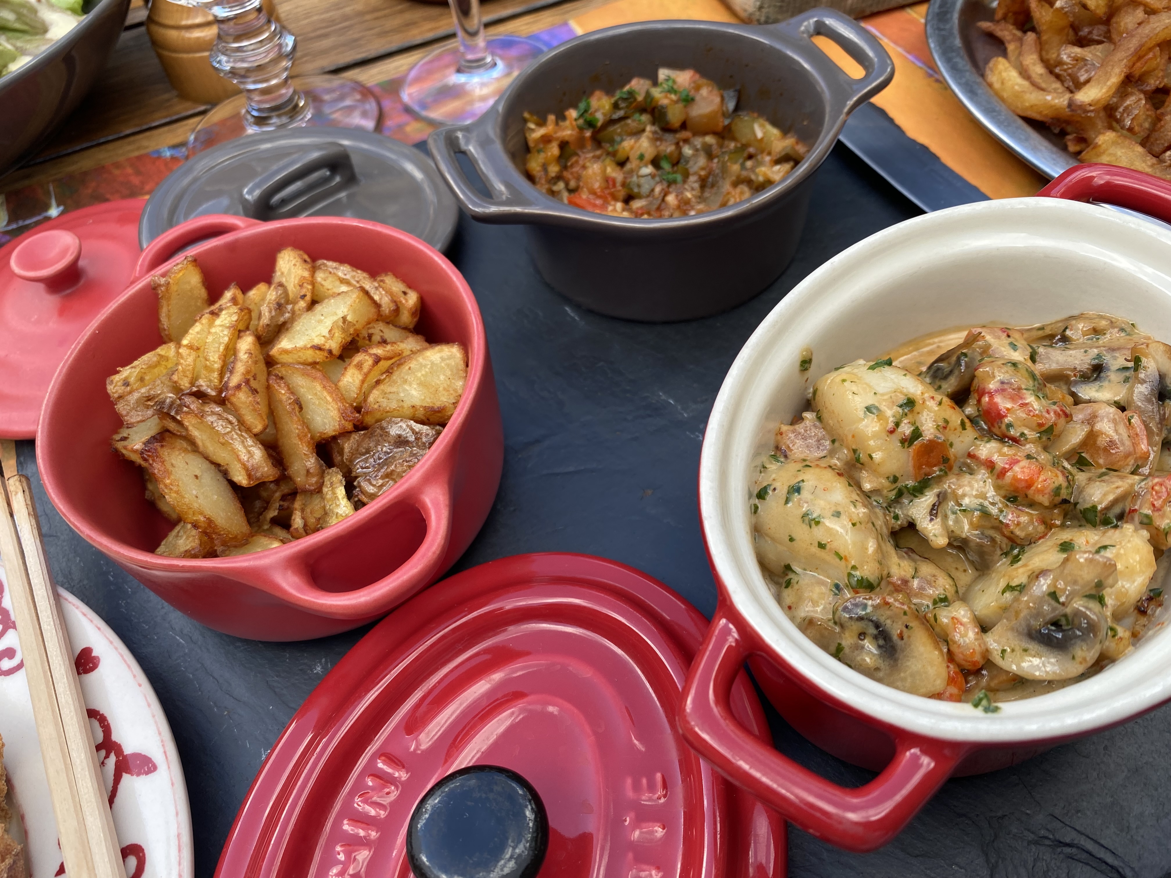 Tout commence par un accueil chaleureux et un cadre agréable. Notre choix se porte sur le brasero de viandes et raclette (et oui nous sommes des dingues au vu de la chaleur 🤣). Assiettes copieuses qui n'empêche pas de nous proposer une 2e tournée de frites et pommes de terre. Les desserts sont succulents et également généreux. Merci pour cette agréable soirée. Si je devais juste faire une petite remarque : l'eau en carafe manquait de fraîcheur, nous avions tellement chaud 😉