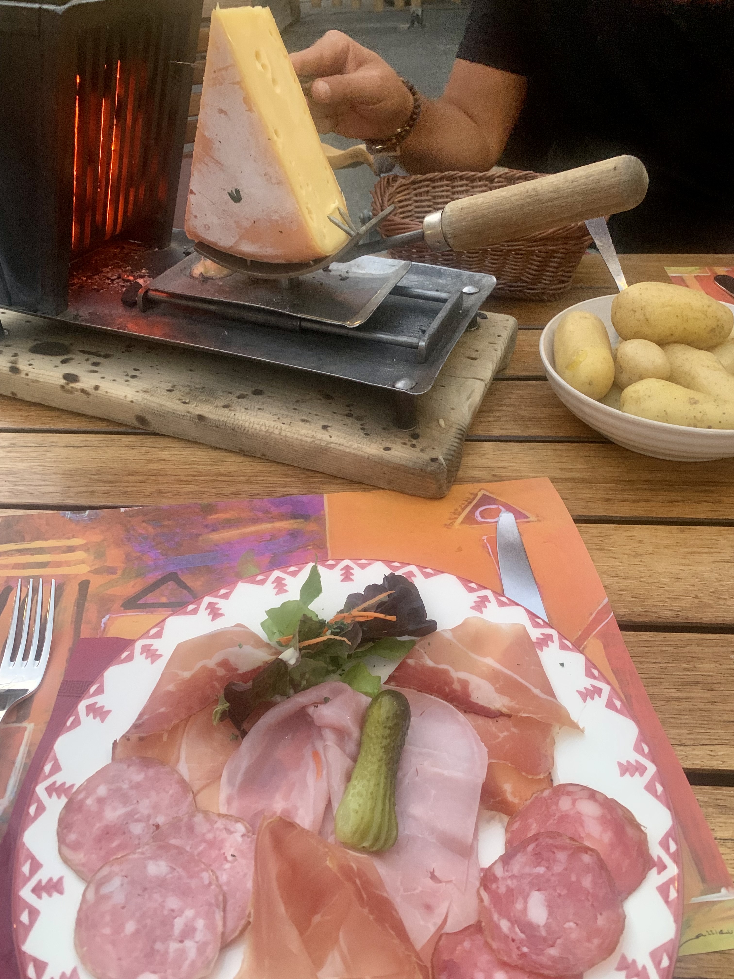 Excellente accueil, la dame qui nous a servi est d'une gentillesse et douce, puis arrangeante. Je n'aime pas la charcuterie, j'ai pu manger la raclette à l'ancienne accompagné d'une Ratatouille maison, excellente idée. Nous avons bien mangé, le restaurant est dans un petit coin très agréable et terrasse caché. On s'y sent privilégié. Nous y retournerons dès que nous reviendrons dans la région.