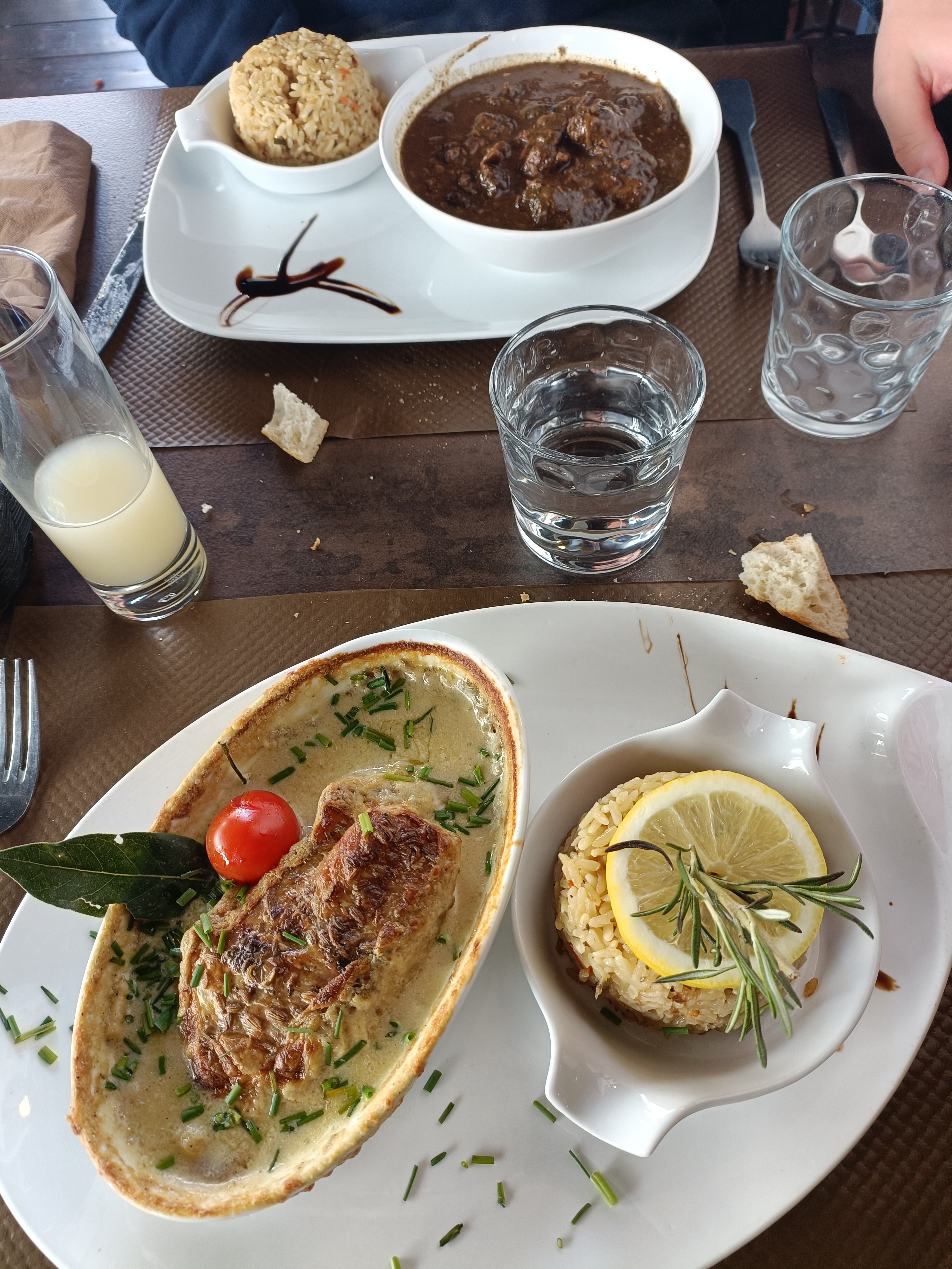 Je me suis fié à la note Google pour choisir ce restaurant et je n'ai pas été déçu. On nous a très bien accueilli, le service était rapide, impeccable, et les plats étaient succulents et copieux. On a pris en entrée le tiramisu de chèvre et la soupe de poisson, un délice tous les deux, et en plat la gardianne de taureau, la meilleure que j'ai mangé, (entrée+plat au prix de 20€). Le vin proposé au verre s'accordait parfaitement aux mets (au prix de 4€).