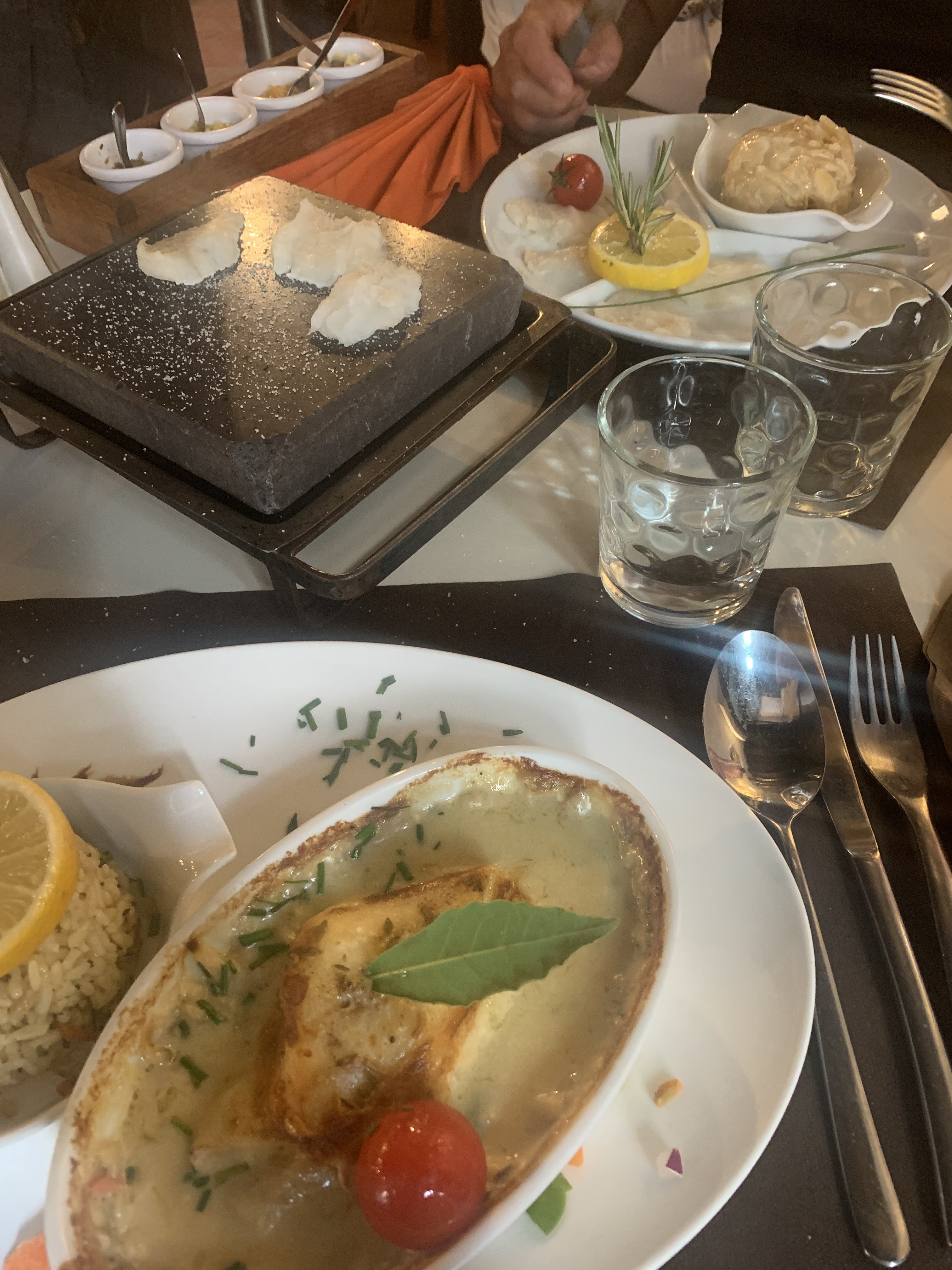 Très bonne entrée avec des produits frais et ensuite pierrade de la mer, une bonne façon de déguster du poisson, crevettes, saint-Jaques au naturel avec des sauces faites maison. Très convivial.