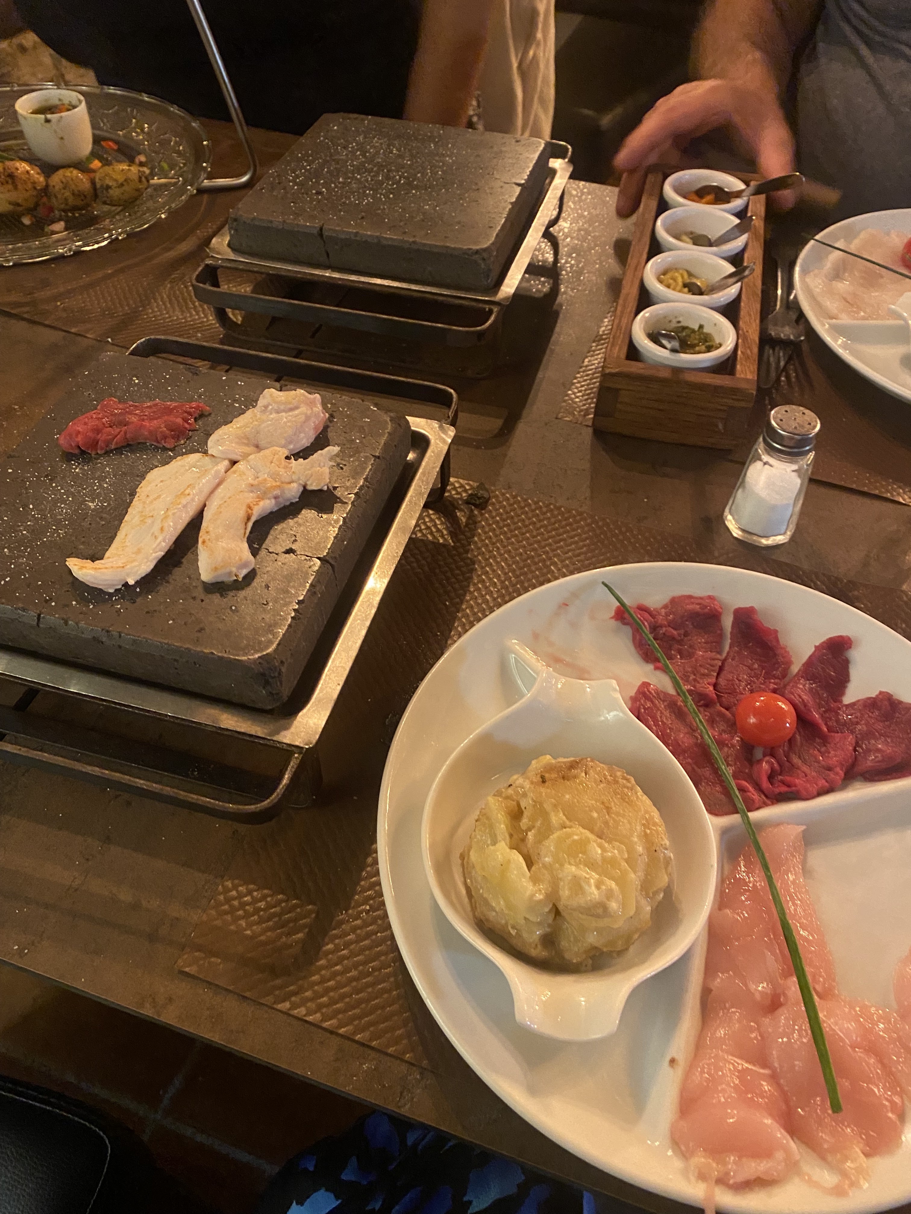 Equipe de serveurs adorables et efficaces. Nous avons très bien mangé et petit plus le concept de cuire son poisson sur la pierre soit même.