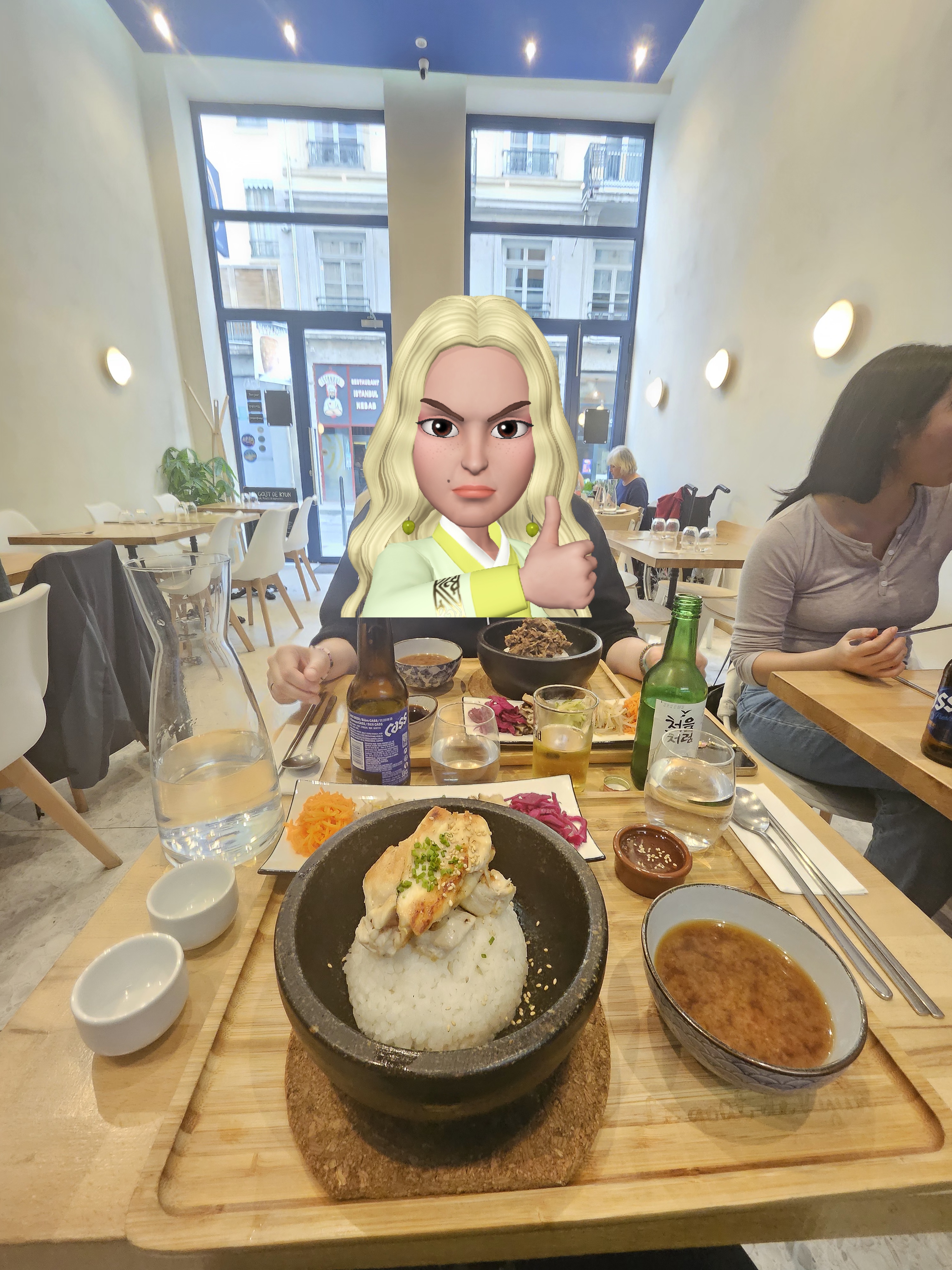 C'est la deuxième fois que je suis venue dans ce restaurant. Cette fois-ci, je n'ai pas prix un menu complet car la fois d'avant j'avais l'impression que mon ventre est rempli trop de riz. Nous avons pris du bibimbap, japchae et poulet coréen. Les serveuse sont très gentilles, les plats sont bons et arrivés rapidement.