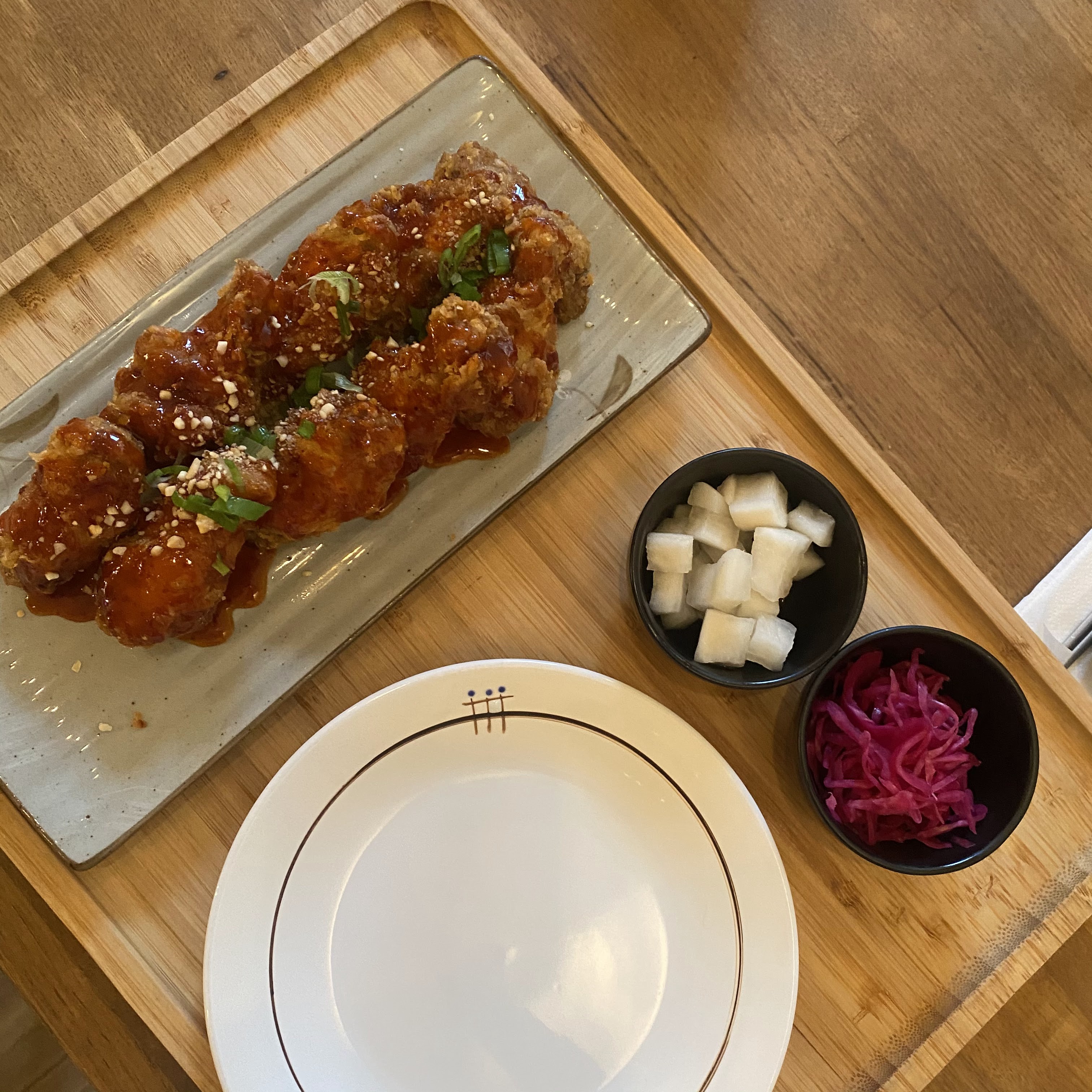 Un lieu paisible avec un poulet coréen très bon. Poulet croustillant avec une sauce spicy accompagné de riz. Le seul bémol est selon moi le prix qui est assez élevée pour la quantité et le plat en lui même. Cependant la qualité est au rendez vous.
