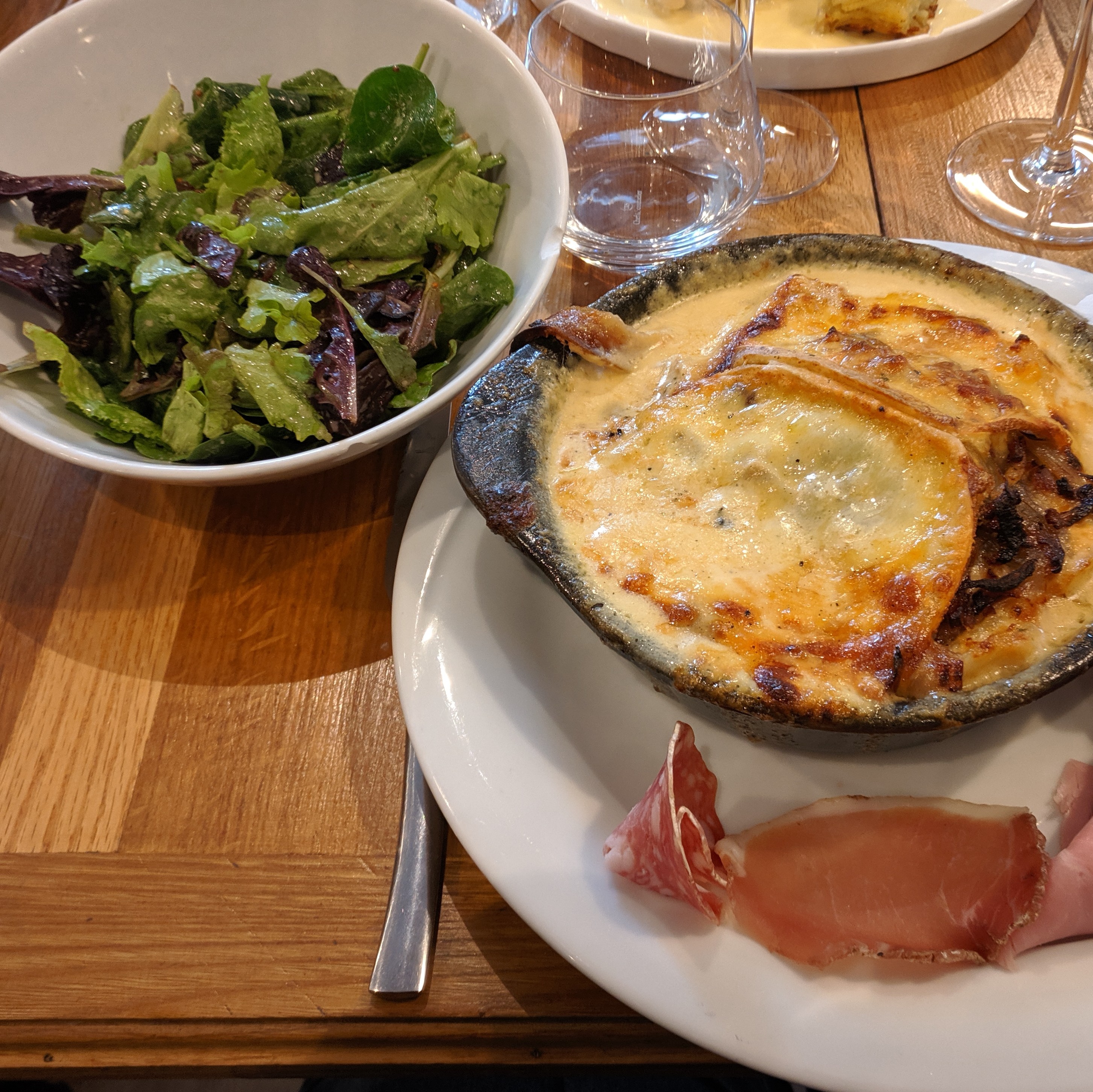 Réservation en ligne pratique, excellent service et rapport qualité prix ! On y mange largement assez (attention aux grandes salade, c'est largement un repas à elles toutes seules) ! Et évidement, le gratin est délicieux !
