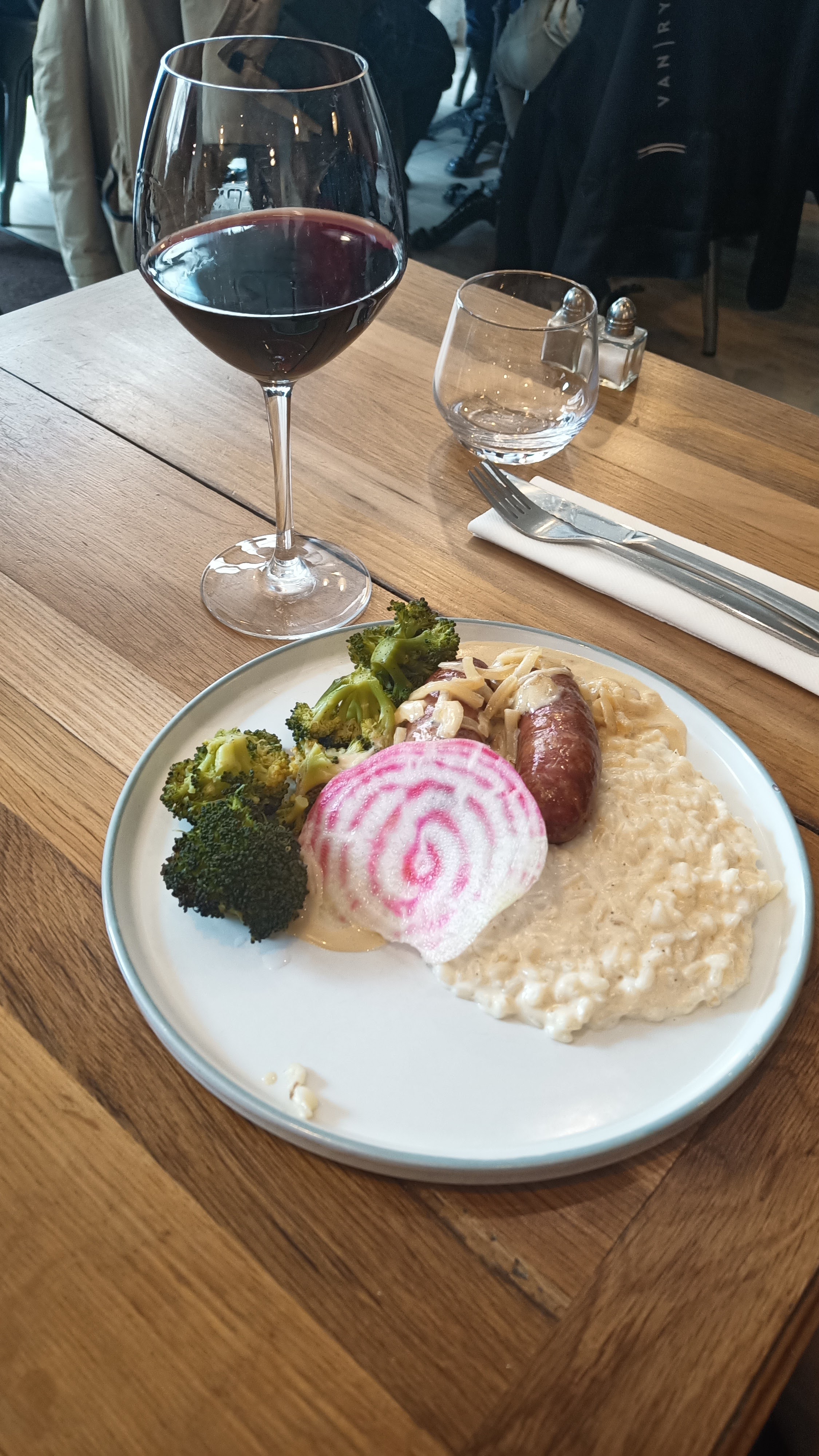 J'espérais apprécier un bon gratin dauphinois, mais il n'est proposé qu'en accompagnement. Donc si vous ne mangez pas de viande, je ne suis pas sûre qu'on puisse avoir le plaisir de le déguster autrement, à part piquer dans l'assiette de sa moitié 😄. Un peu dommage pour un restaurant qui s'appelle le Gratin Dauphinois, qu'il n'y ait que des gratins de ravioles proposés en plat individuel. Les salades sont très copieuses et bonnes. Le cadre est agréable et le service sympathique. On nous a même offert un petit digestif. Ce restaurant accepte également la carte Sodexo.