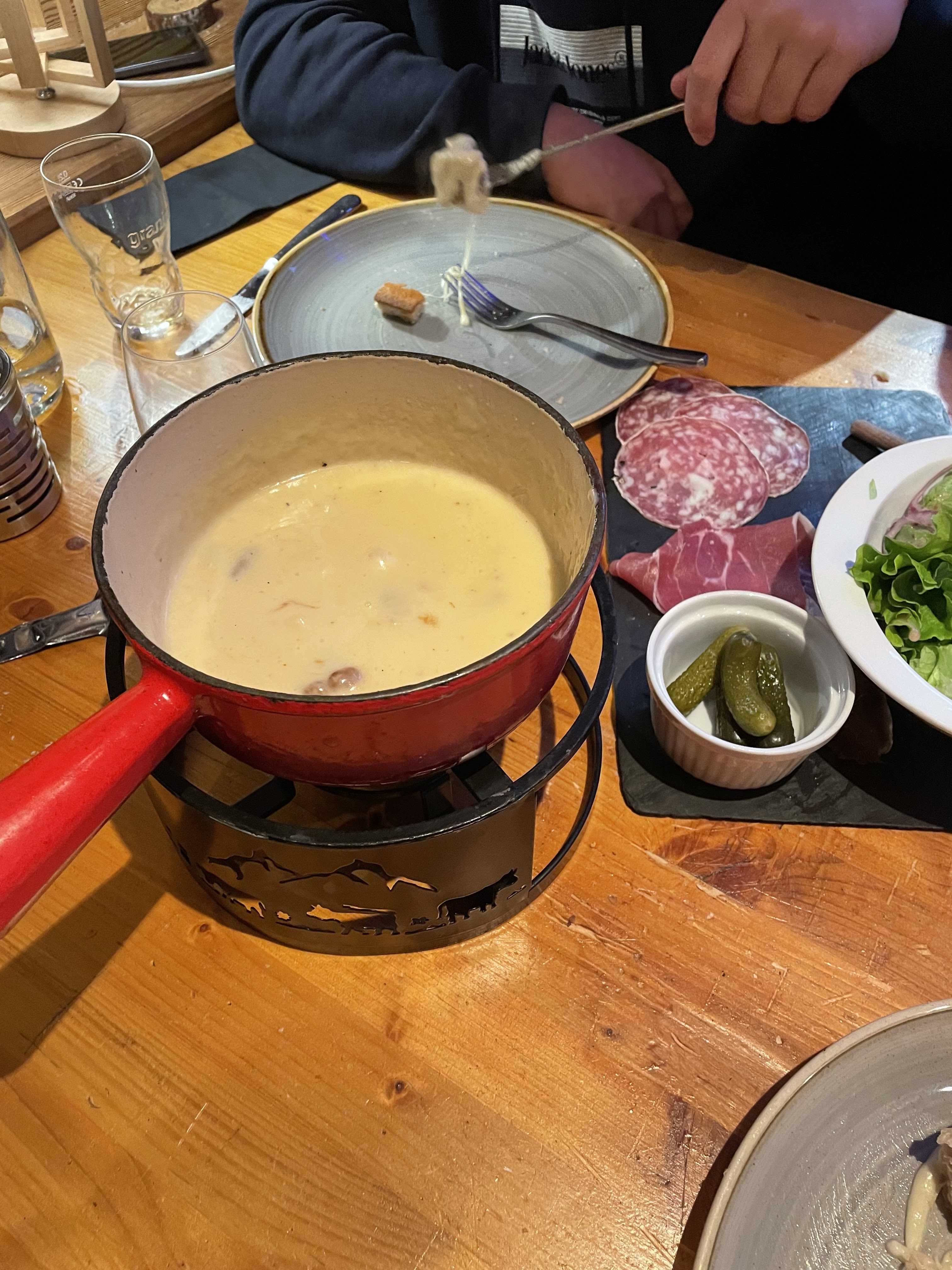 Dans l'ambiance cocoon d'une petite salle à l'étage, le fondue avec charcuterie était bien moins copieuse que son tarif...