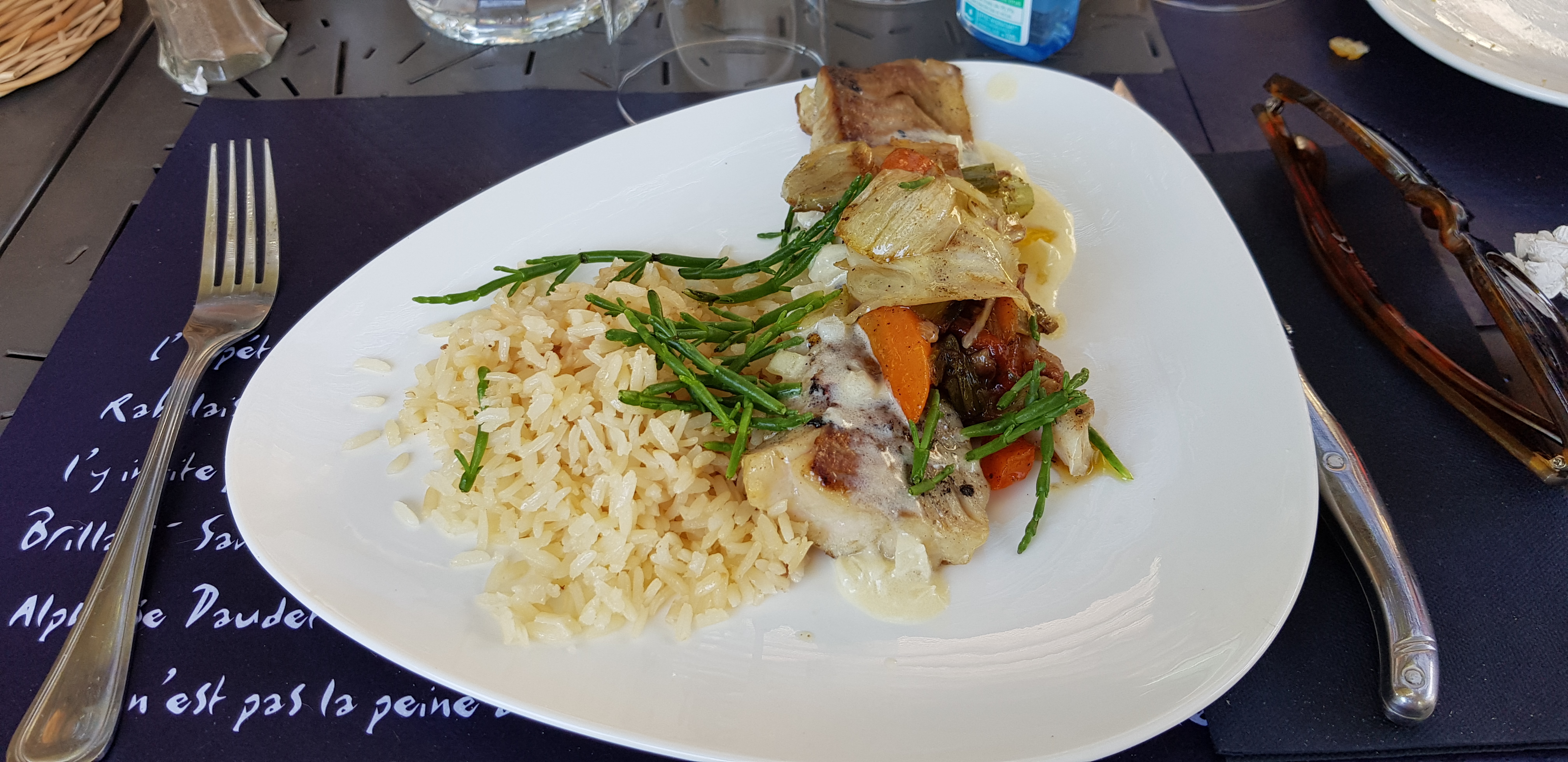 Très beau lieu service irréprochable, déçu par la cuisine, trop salé, et paradoxalement manque d'assaisonement. Sèche tellement ferme que impossible à terminer, aïoli ultra salé.
