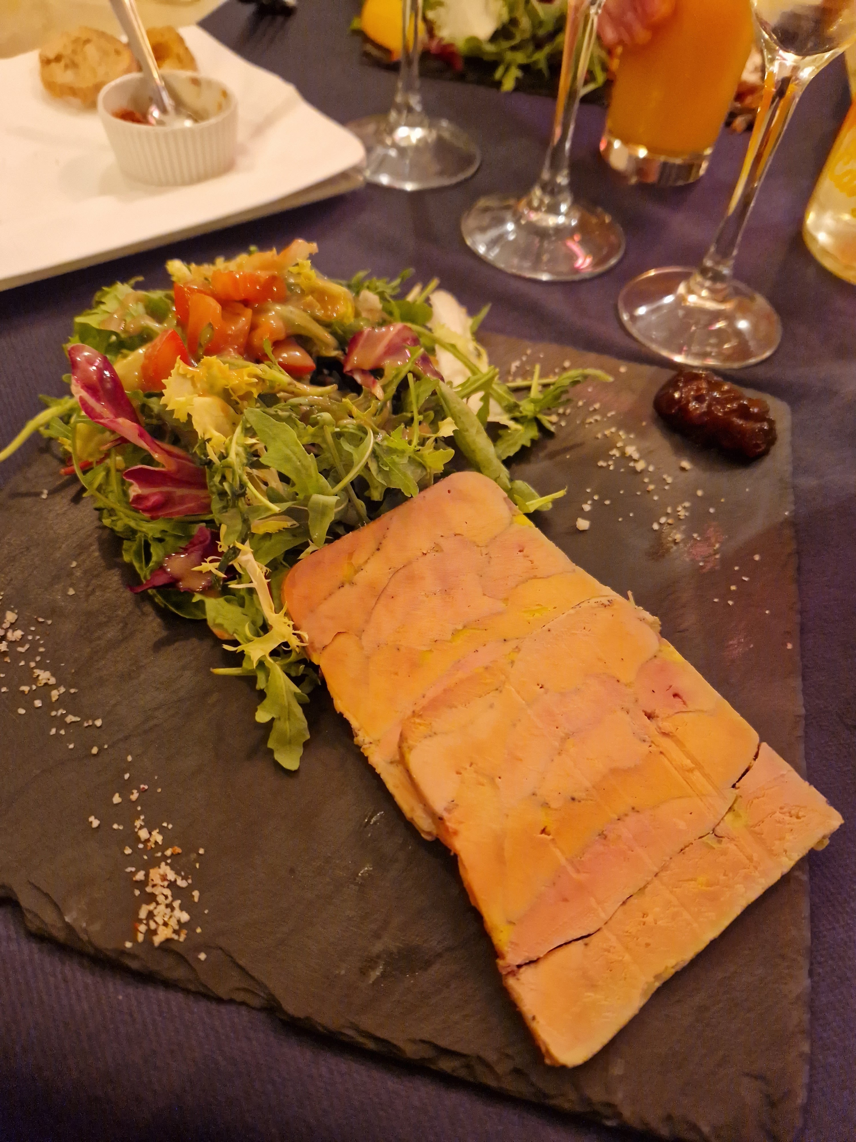 Nous avons opté pour le menu à 32 €. Trés, trés moyen. Le confit de canard, cuit et recuit, les frites surgelées et non maison. La tourte aux pommes sortie de son emballage à peine réchauffée. Je mets, 3 /5 et je suis généreuse.
