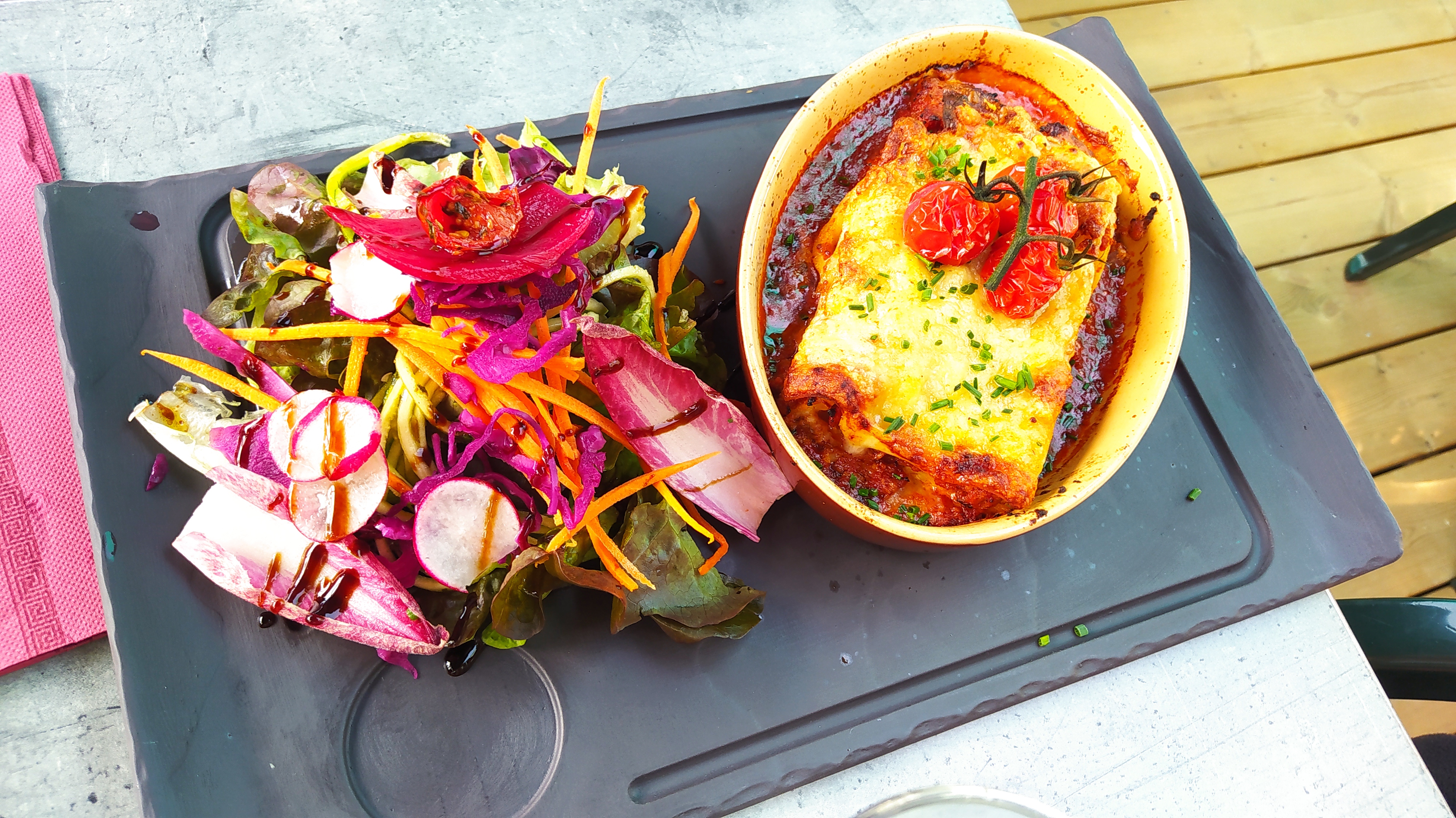 Serveur peu sympathique. Rapport qualité prix très décevant. Pizza raclette trop chère pour la qualité des produits et salade avec des légumes non travaillés. Nous avons été très déçu. Rapidité du service reste un point fort.