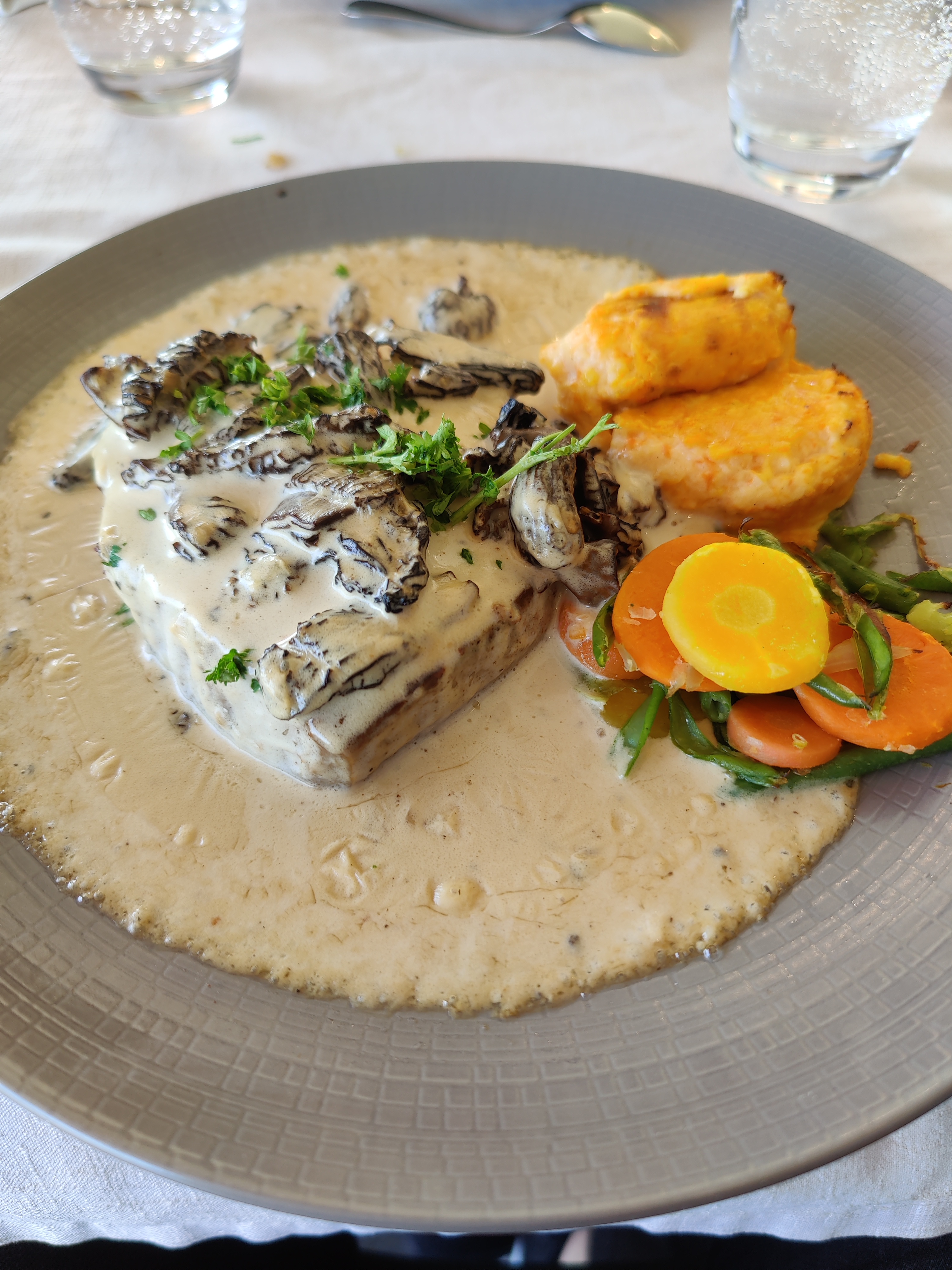 Nous avions fait le choix de manger des grenouilles et franchement très bonnes bien cuites bien assaisonné à volonté ; nous reviendrons car à ce jour c'est là que j'ai mangé les meilleurs grenouilles. Un des amis a pris lui le beau aux morilles et il a était vraiment satisfait de son plat. Un service bien fait du personnel très aimable Bravo