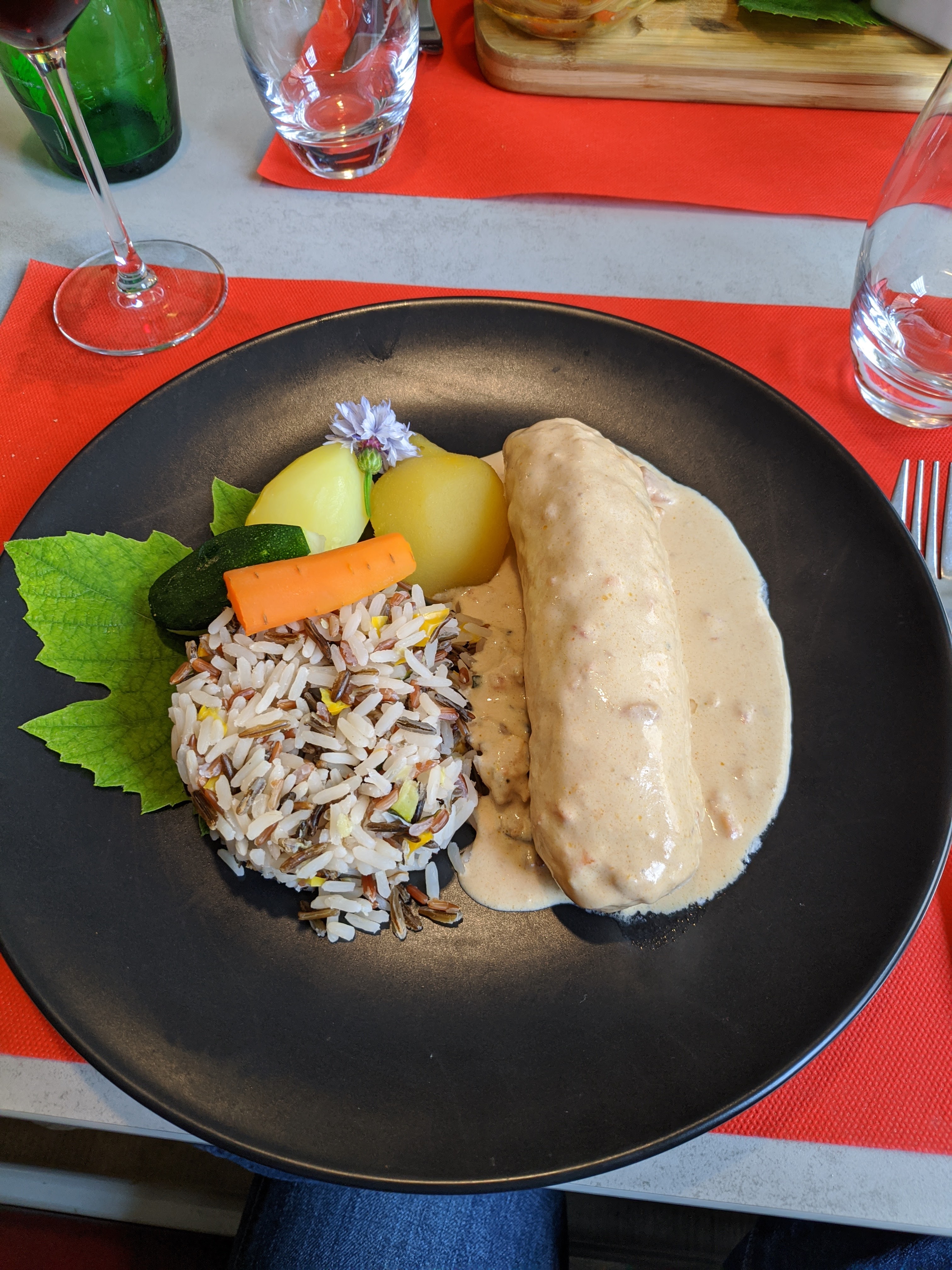 Pour une première c est une réussite. Repas copieux avec de super produits. La déco des assiettes est magnifique digne d un gastro. Bravo à vous pour votre cuisine. Je recommande vivement.
