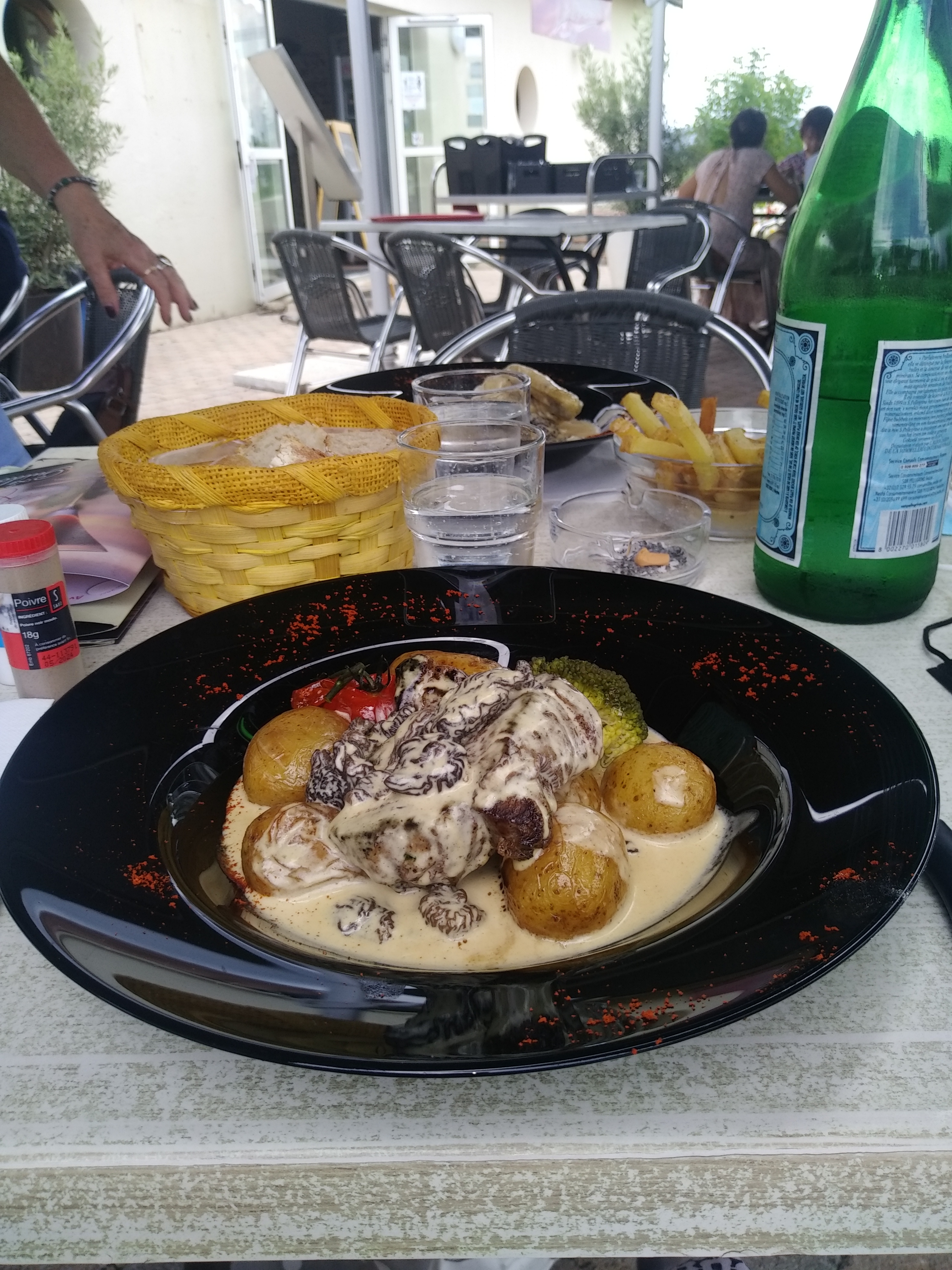 Très bon accueil, Service, très rapide. Nous avons mangé de succulent poulet de Bresse aux morilles et à la crème. Un vrai régal. Nous ne sommes pas déçus de notre arrêt au hasard d’un rond-point.