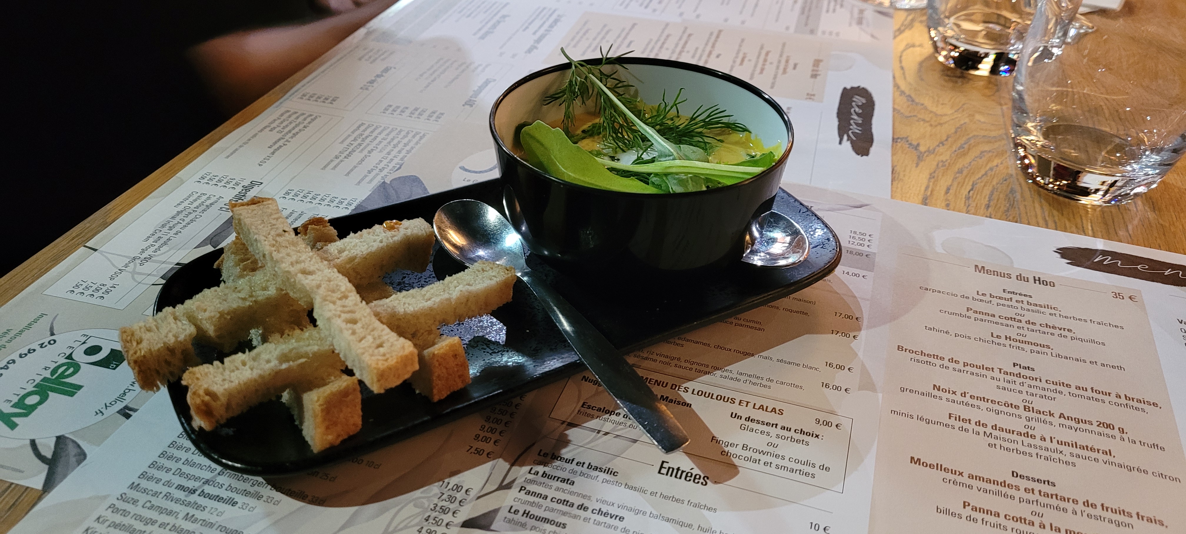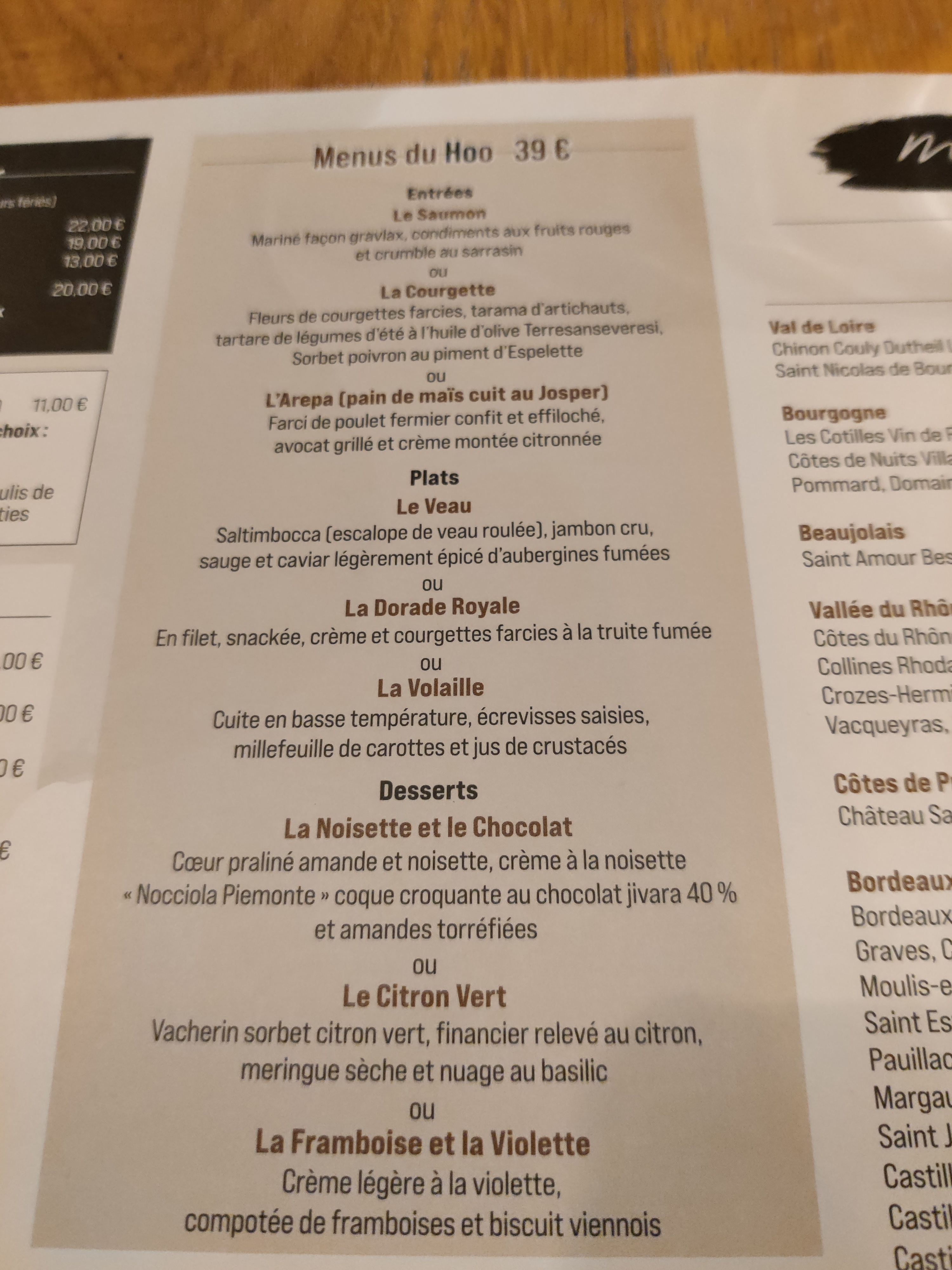 Un cadre très agréable pour profiter d’un bon repas. Le Hoo propose une carte très intéressante, évolutive, avec des produits frais et de saison. L’equipe est très accueillante serviable et à l’ecoute. La cuisine ouverte permet d’observer la préparation minutieuse des plats et participe à l´ambiance de l’établissement. Je recommande fortement !