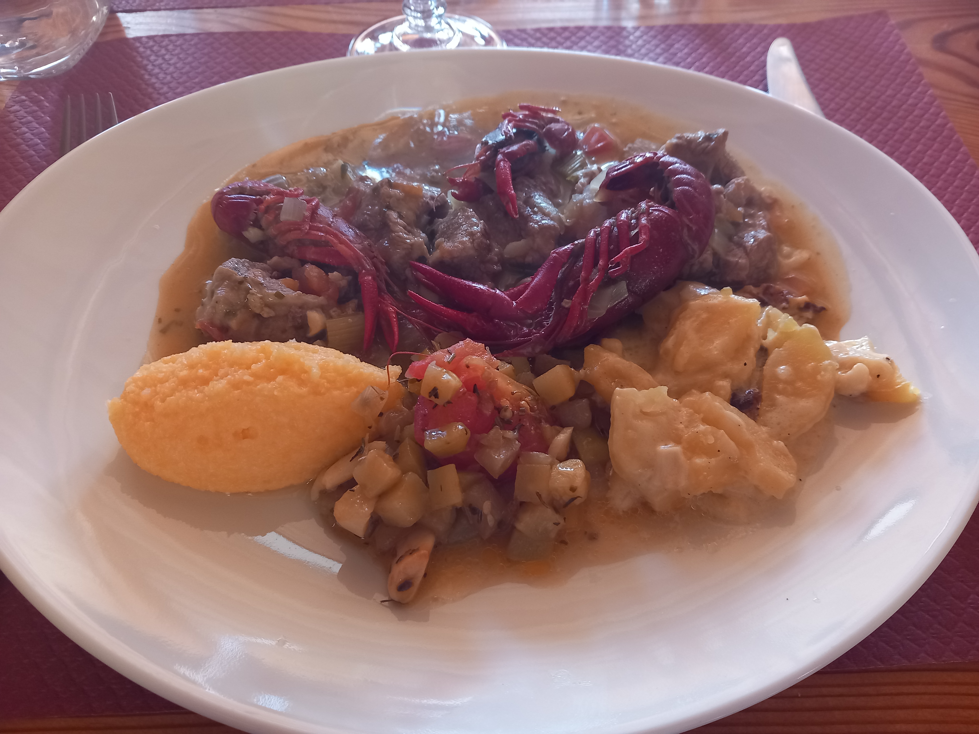 Excellente étape culinaire avec un plat su jour Saute de veau aux écrevisses