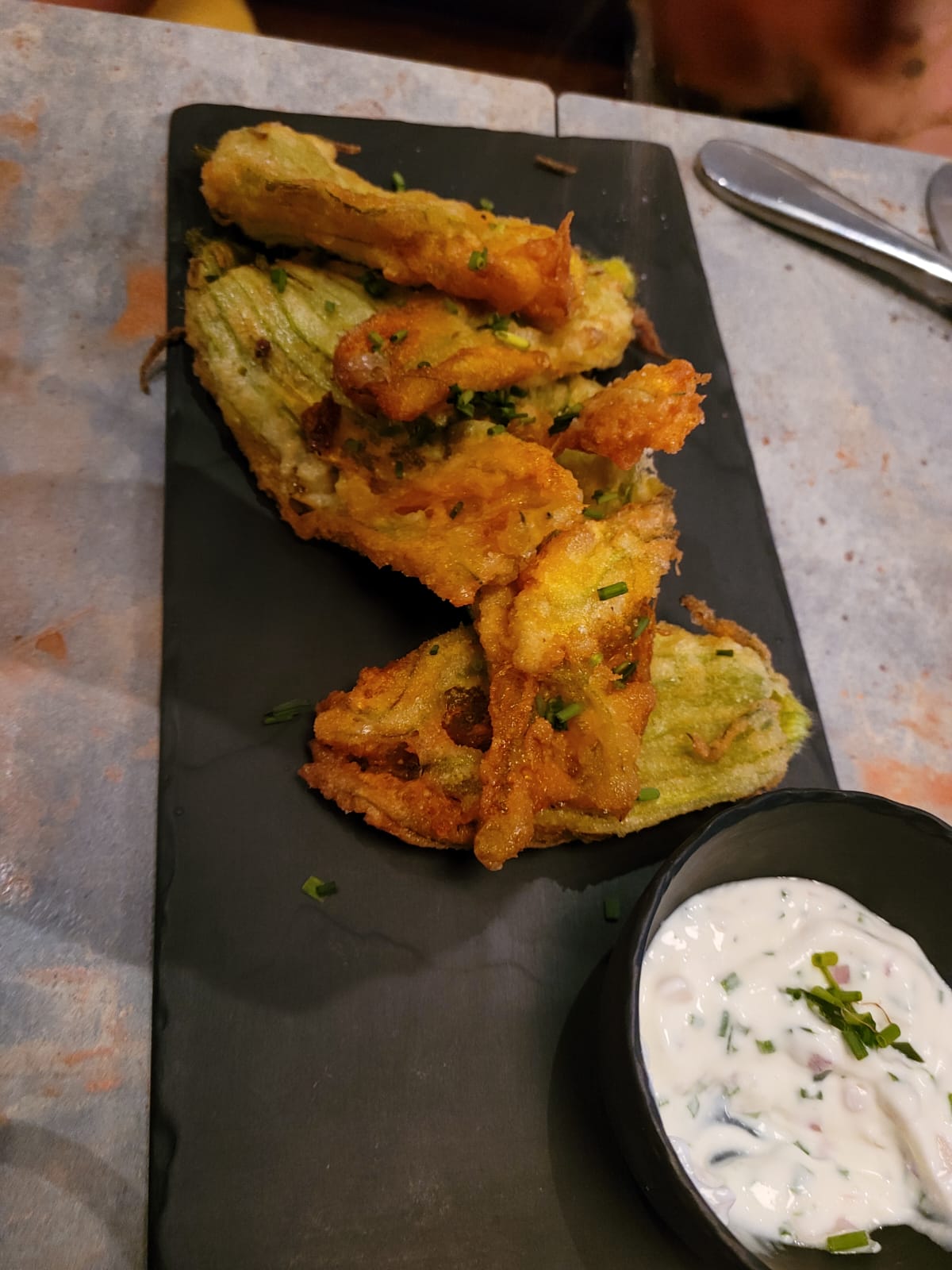 Nous avons eu la chance d'avoir une table pour deux personnes même si nous n'avions pas réservé à l'avance. La nourriture fantastique ! En particulier, je dois recommander l'une des entrées, la fleur de courgette frite. Étonnamment bon apéritif ! Les autres plats sont également très bons, ainsi que l'accueil.