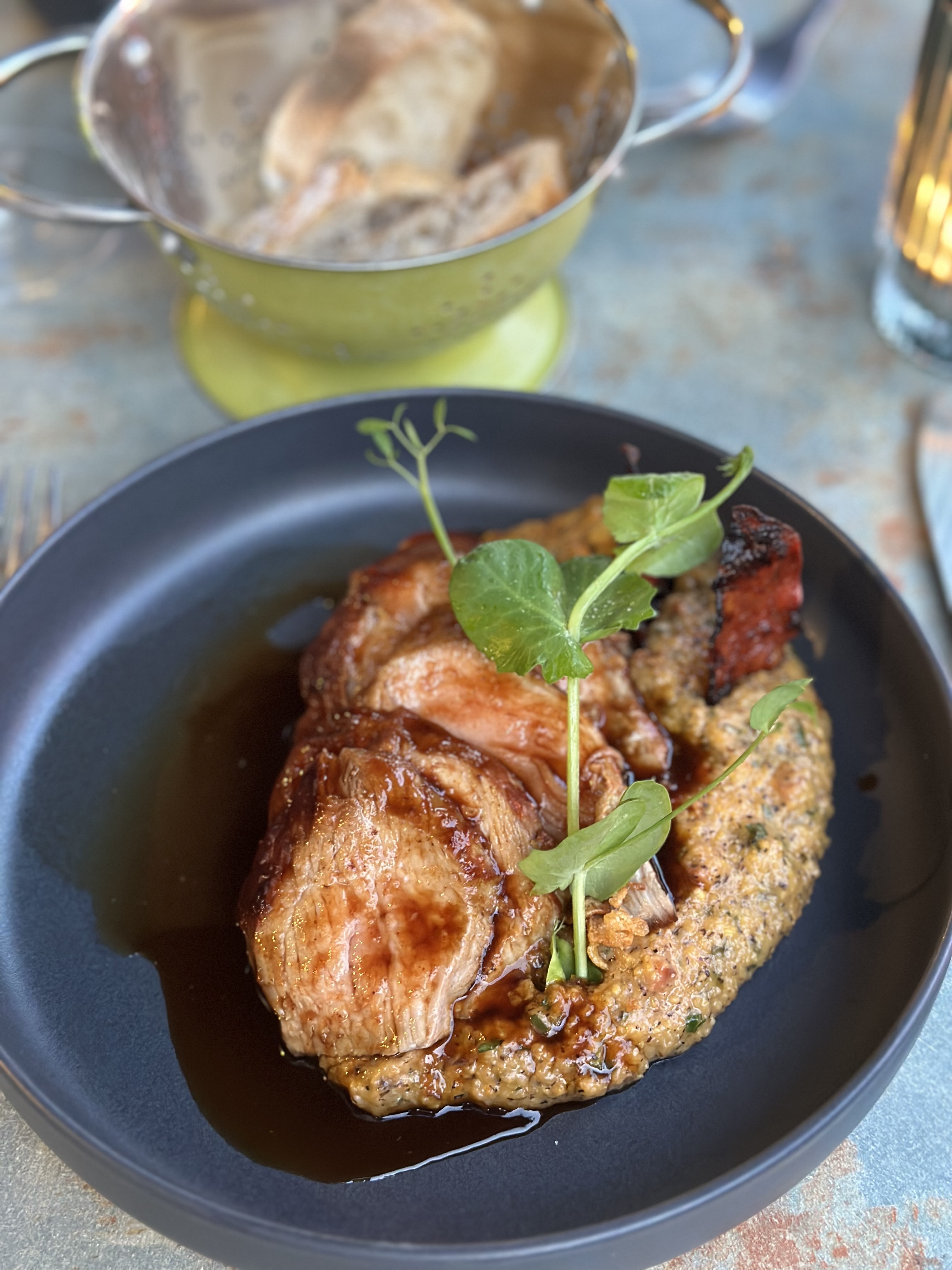 La nourriture était fantastique, d'excellents vins, un service exceptionnel. Vraiment un super endroit confortable pour profiter d'un bon dîner. Nous avons eu deux entrées que nous préparons pour la saison, partagé le porc avec une polenta crémeuse et une tarte à la rhubarbe. Tout cela était charmant. Personnel très attentionné et l'endroit est impeccablement propre. Merci!