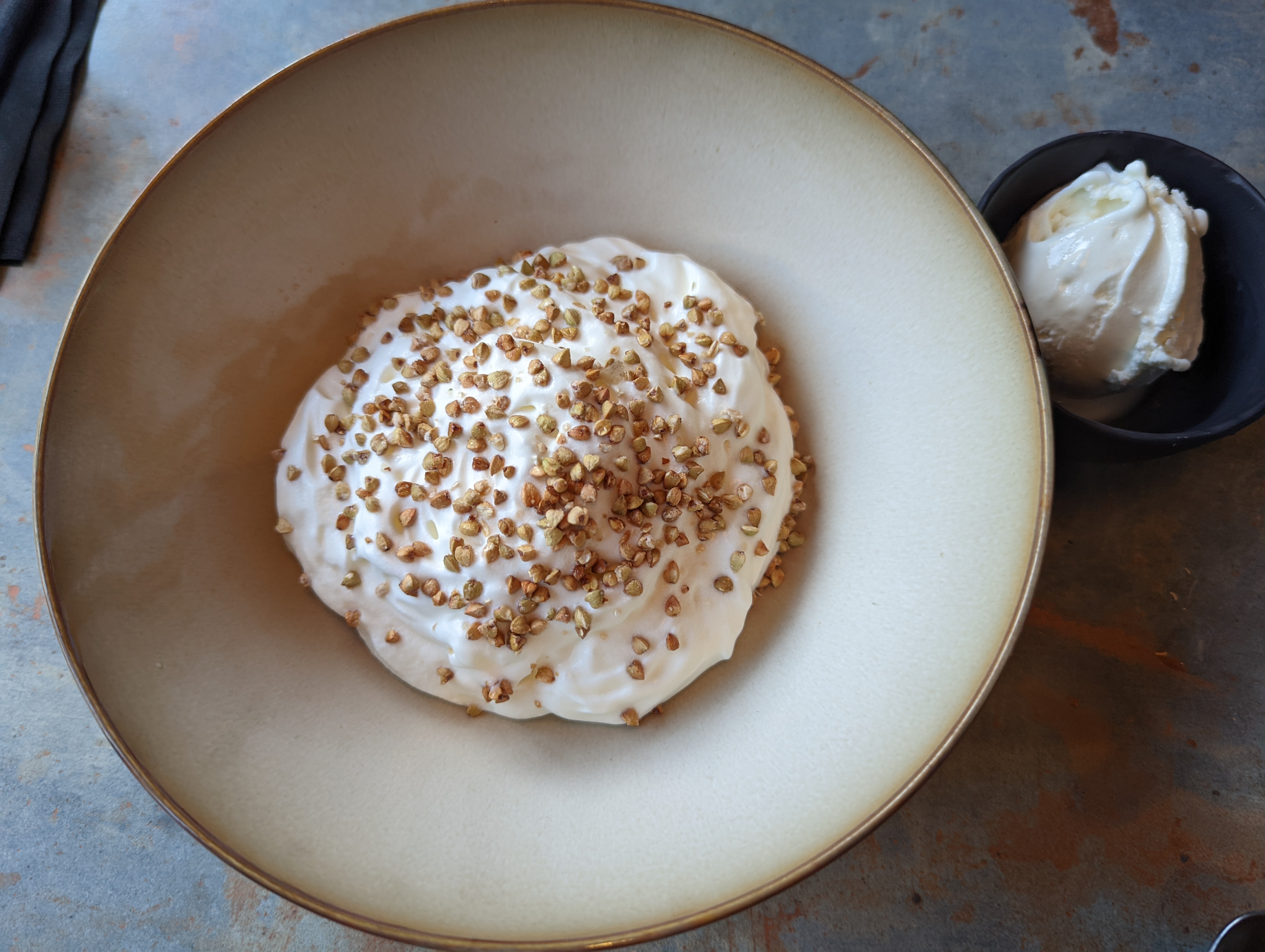 J'ai adoré cet endroit. Bonne nourriture. froid et accueillant. Des gens très sympas qui travaillent. Des chefs-d’œuvre culinaires inattendus. Nous avons eu le dessert à la morue, à la poitrine de porc, aux fleurs de courgettes et à la mousse de babeurre.