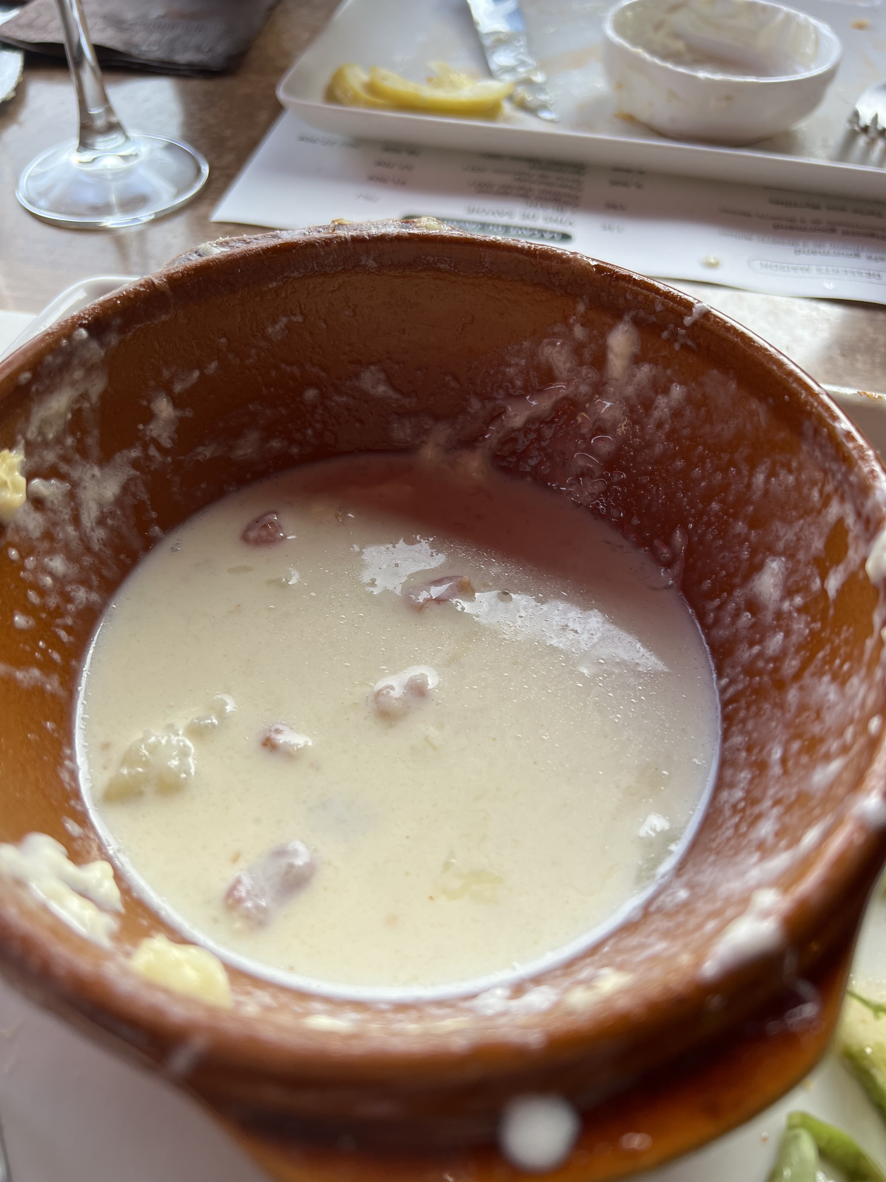 Après un déjeuner en terrasse ensoleillée et un dîner, je conseille plutôt un midi tranquille avec un bon burger. La fondue n'est pas mal mais 100% comté et avec beaucoup de vin (les enfants n'aiment pas forcément). Cocktails., vin et café gourmand assez (très) cher.