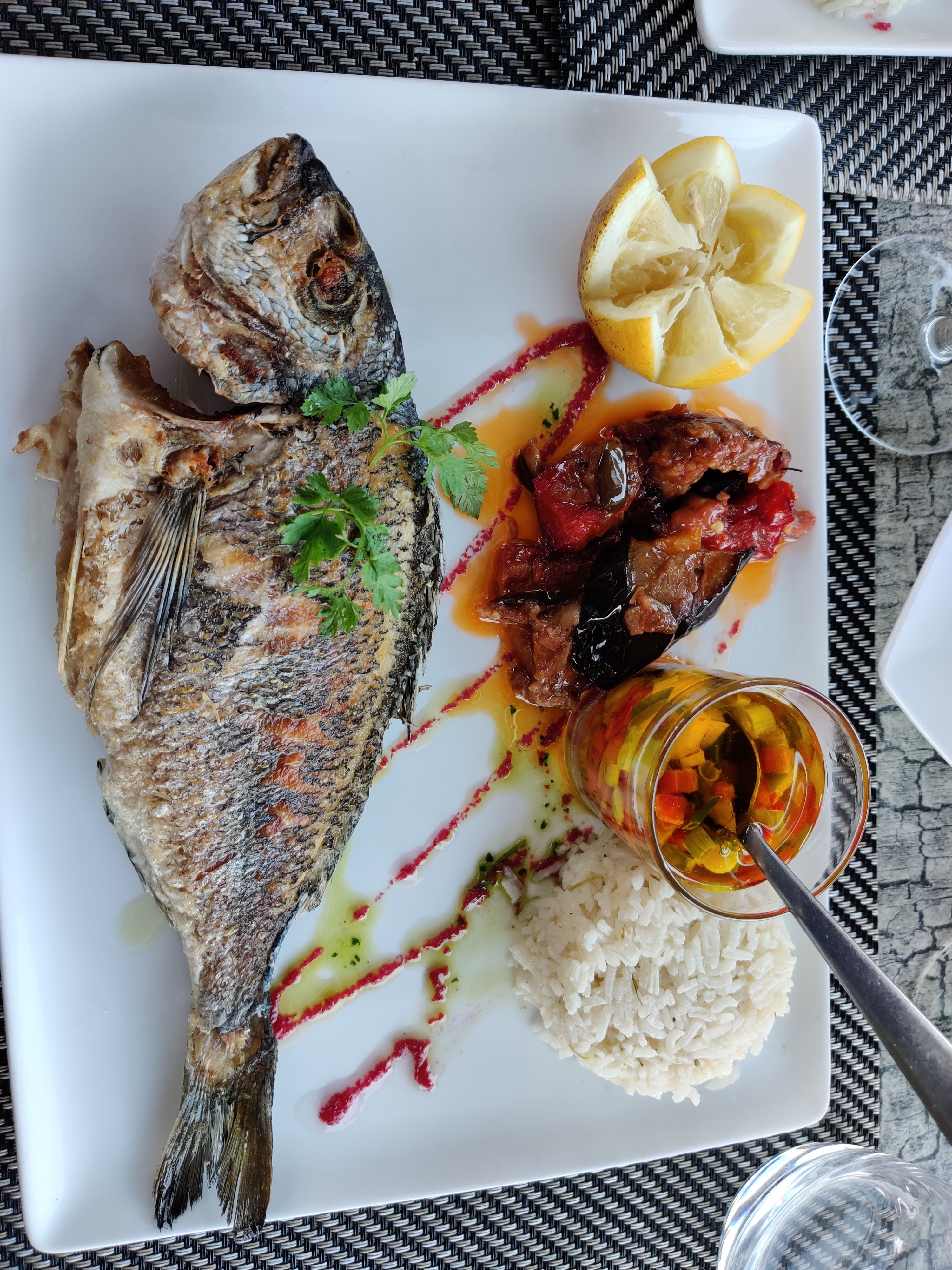 Le poulpe est copieux et excellent j’aurais juste ajouté un peu de piment au coulis de tomate pour faire comme la sauce arrabiata Personnel agréable La vue est remarquable