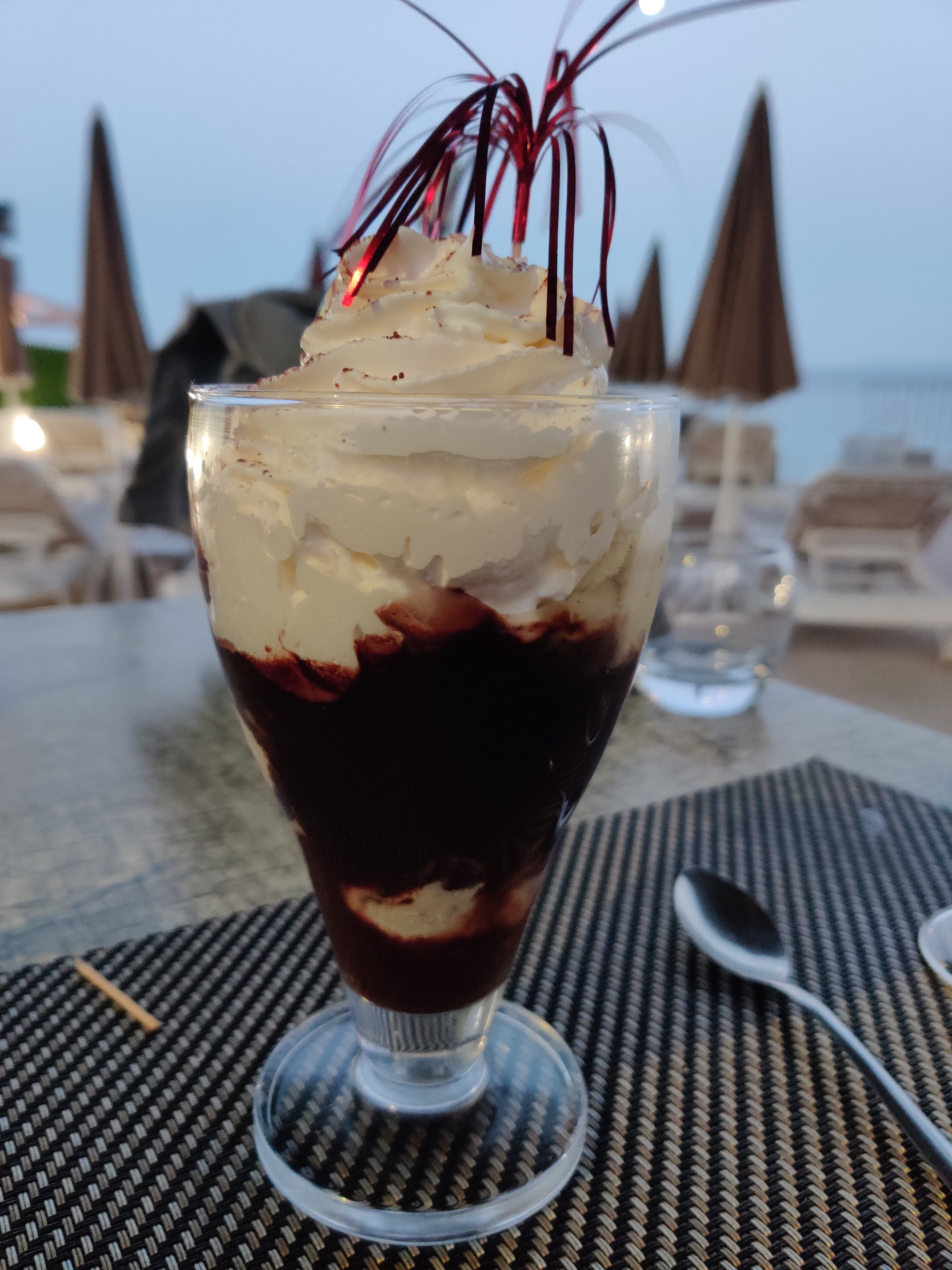 En tant que visiteurs de la plage, nous voulions nous asseoir dans le restaurant avec quelques boissons et quelque chose de petit à manger. Le premier serveur est venu à notre table avec les cartes et nous a dit que nous ne pouvions nous asseoir que pour manger. Au bout d'un certain temps, lorsque la serveuse est venue prendre notre commande, on nous a ordonné de quitter la table... on nous a alors permis de déguster la glace et les boissons au bar complet. Pendant ce temps, toutes les tables étaient libres. Le personnel ne porte pas de masque. Non recommandé.
