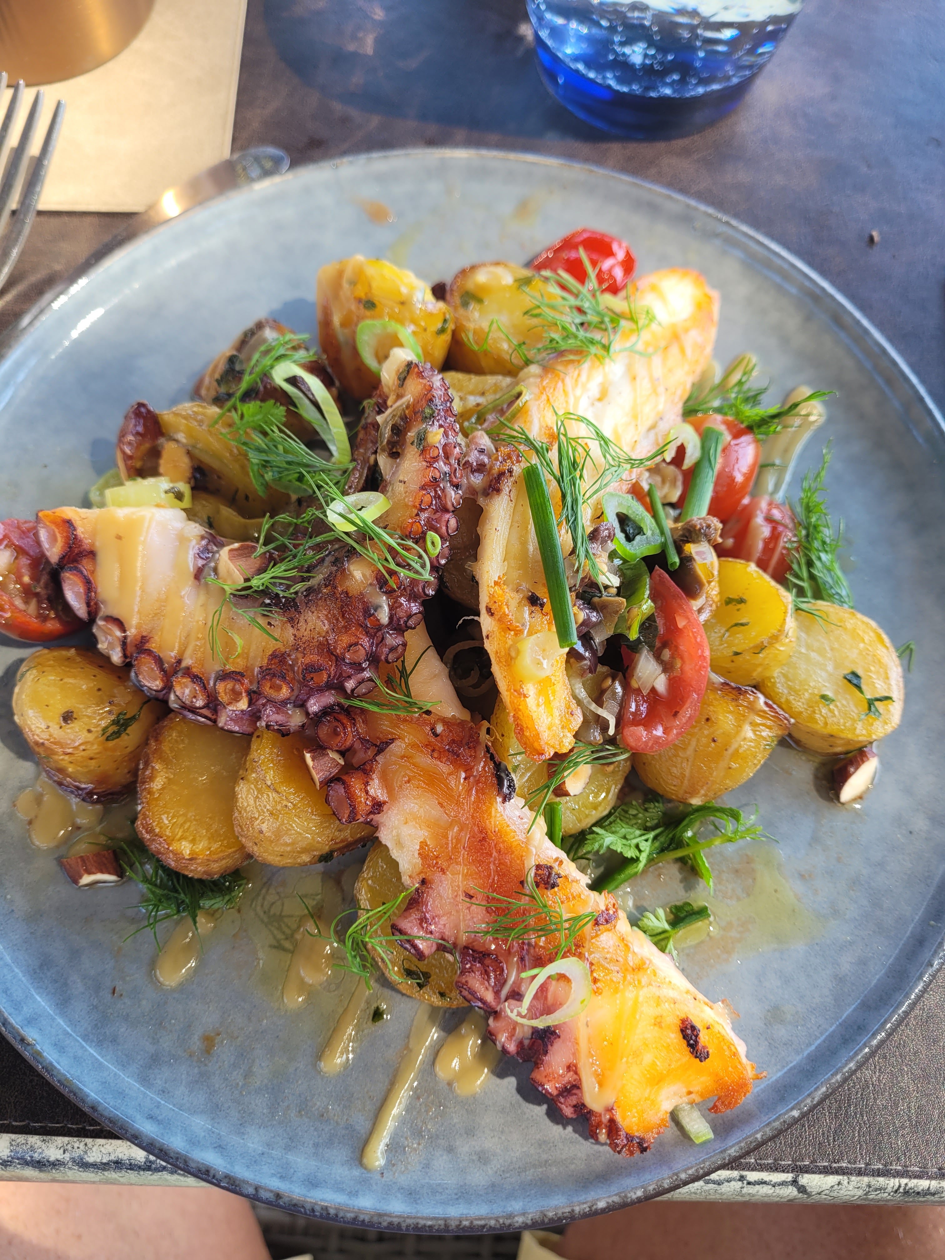 Apéritif sans amuses-gueules à 13h. 1 seule tentacule de poulpe avec haricots coco sauce tomate. Mieux il y a 2 ans où il y avait un poulpe entier avec du riz. Service moyen. Déçue je ne pense pas revenir.