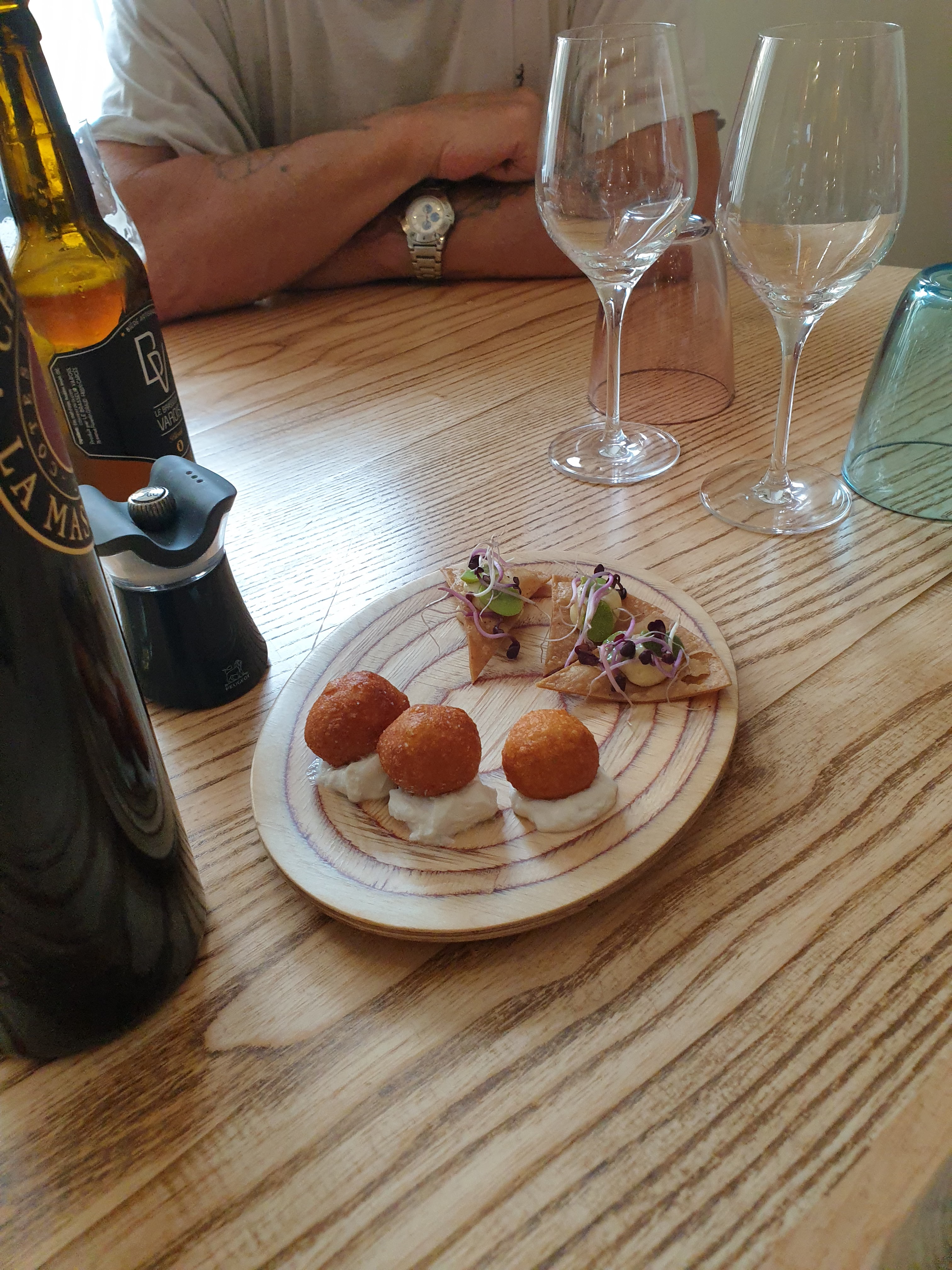 Bonjour. Bonne table. Inventive, goûteuse, portion généreuses et présentation parfaite. Je rajouterai qualité des produits irréprochable et choix de ceux-ci intelligente. Bravo. Le cadre est agréable et de bon gout. La salle encore un peu bruyante malgré de gros efforts mais rien d'insurmontable. Je suis très sensible au bruit. Les vins : bonne qualité, pas de délires et prix doux. Le service, gentil et prévenant. Le prix de notre soirée à 2 : 101 Euros pour 3 plats et une bouteille de rosé de la région. C'est plus que raisonnable. Je conseille donc sans réserves.