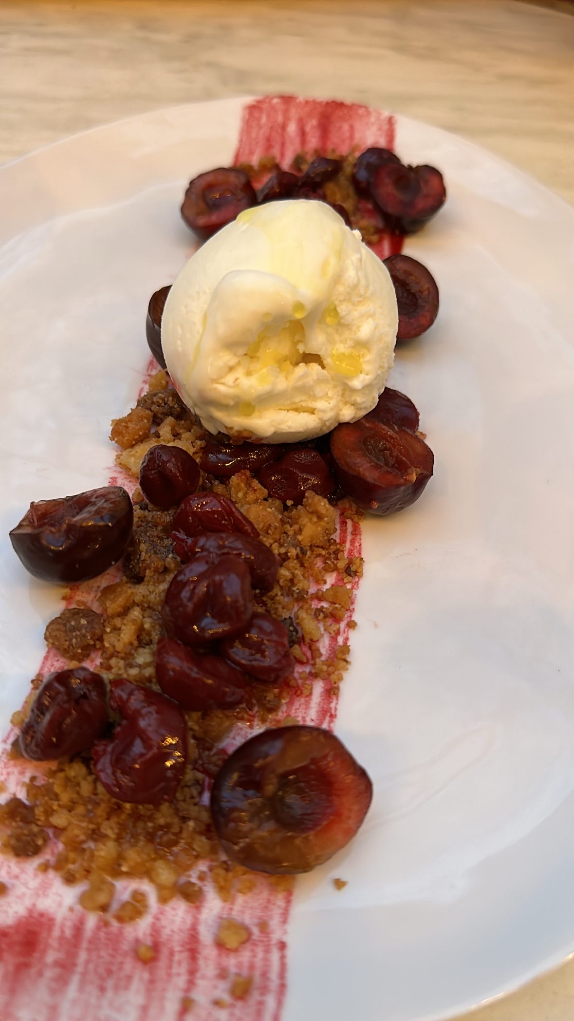 Entrée / Plat : bon Dessert : quelle déception!!! Une micro part de nougat glacé. Et pire encore quand celles des 2 autres tables voisines en faisaient le triple. Pour un dessert à 10 euros c'est un peu fâcheux. Que s'est-il passé ? Dommage de finir sur une mauvaise note.