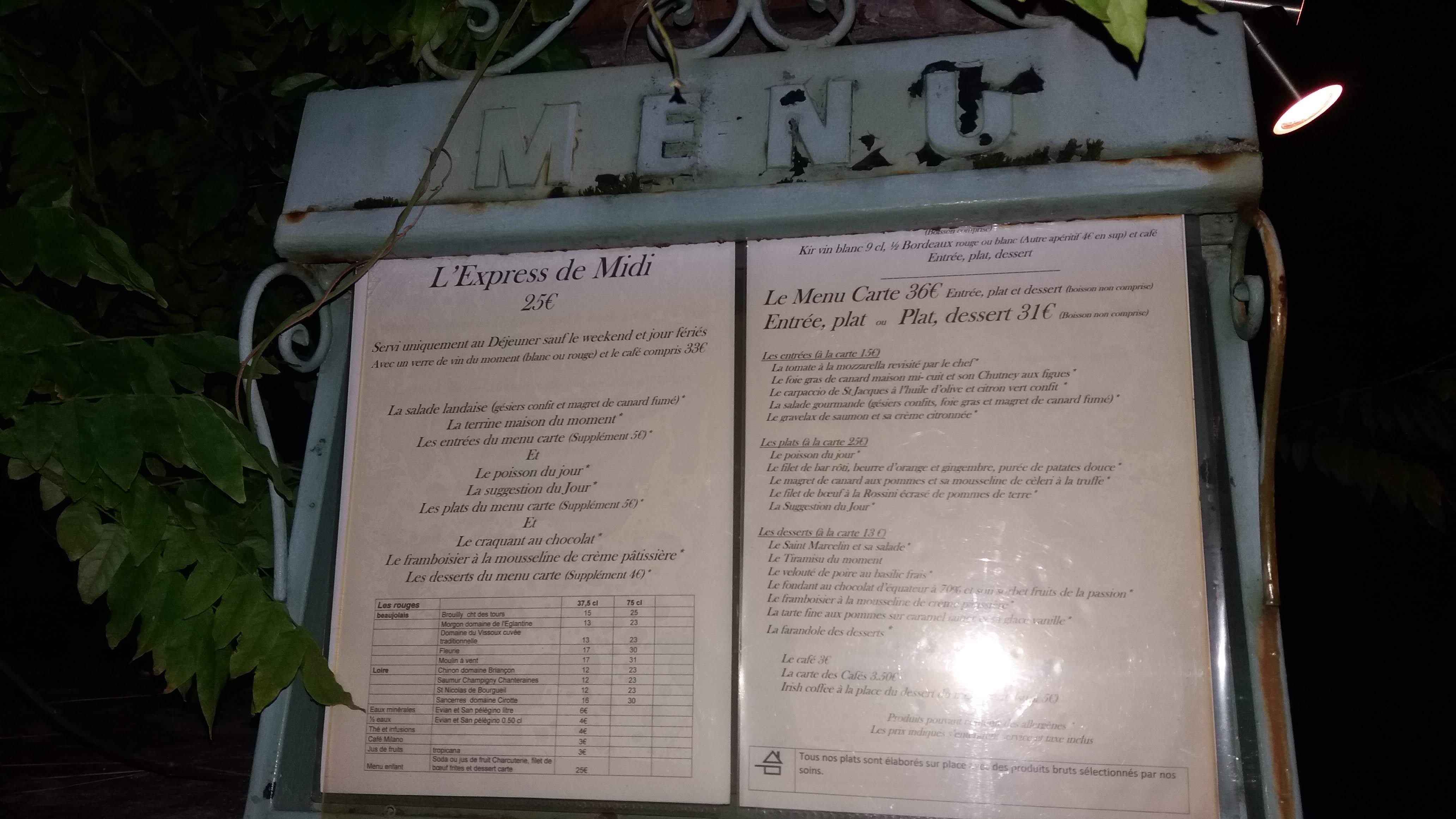 Très bonne table dans un petit coin de verdure. Menu à 36€ (entrée, plat, dessert) et à 45€ (idem plus, kir, 1/2 bouteille de vin, café). Service impeccable. Pensez à réserver.