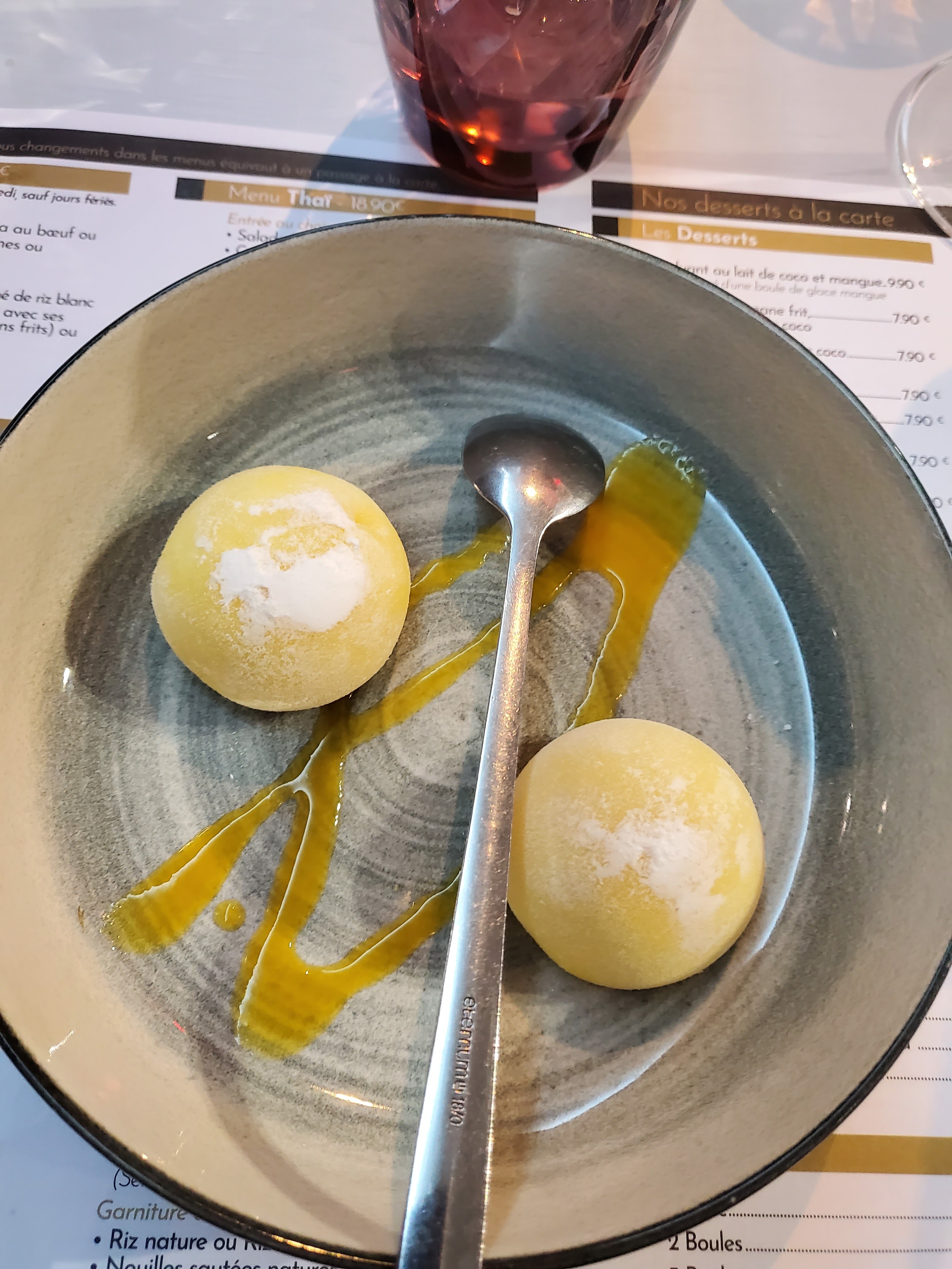 Waouw... Gros amateur de cuisine thaï, c'est rare de trouver un restau en France qui donne l'impression d'être un peu là-bas. Spécialité de curry rouge thaï, avec viande ou poisson au choix, que je vous conseille avec un riz gluant. Top ! Budget très raisonnable. Le top en restau asiatique sur Grenoble. Photo d'un dessert classique en thaïlande : mangue et riz gluant à la vanille.