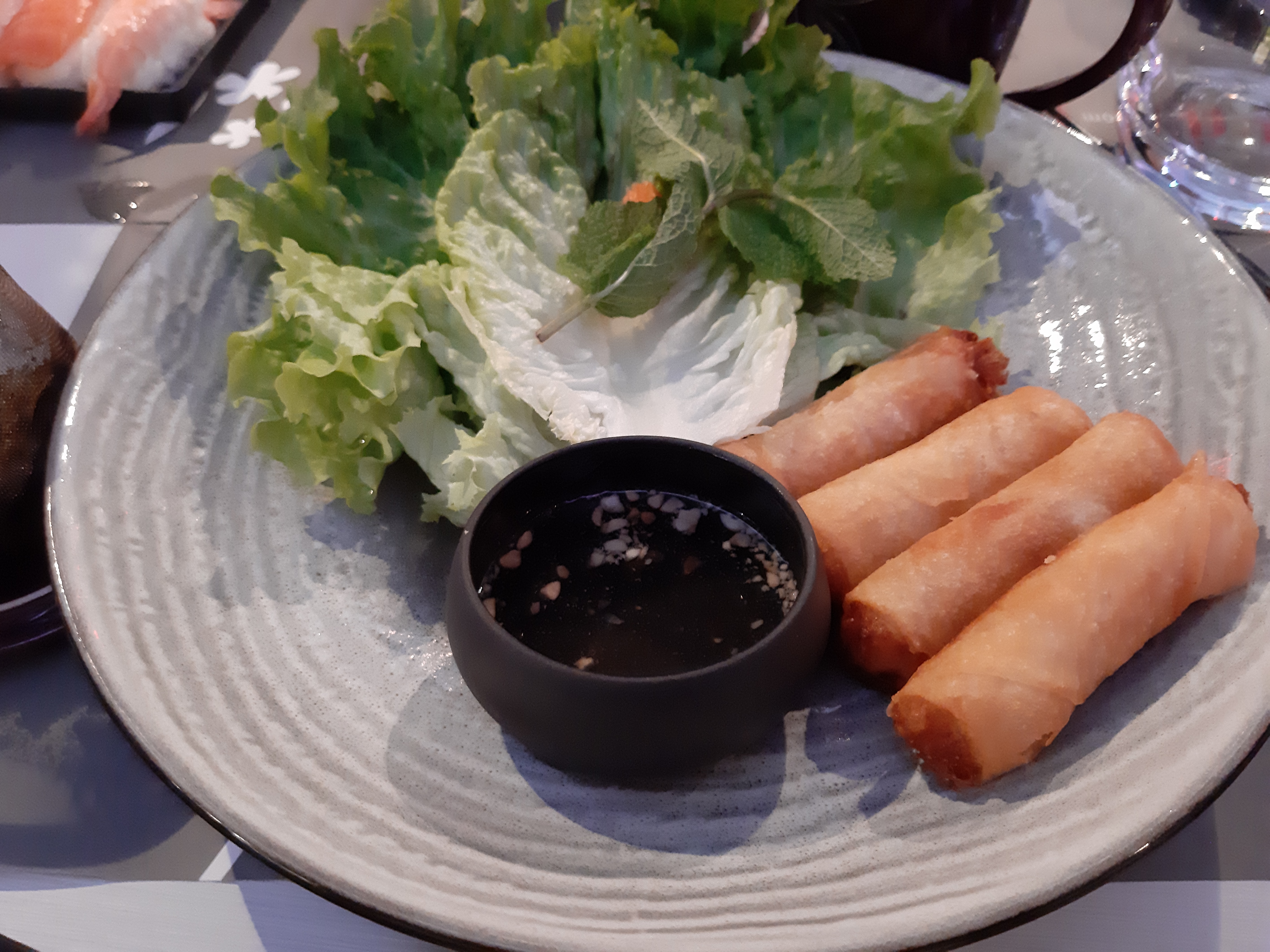 Les + : -Cadre très agréable (décoration, de l'espace, c'est calme) -Service rapide (serveurs aimables et relativement peu d'attente) Les - : - La quantité servie : pour une entrée à 7€, on s'attend à plus que 4 nems. Pareil, 7€ pour 4 sushis ?! - la qualité des plats : c'est basique. Pas foncièrement mauvais, mais très basique. Énormément de choix dans la carte, on ne peut pas non plus s'attendre à du fait maison. Mon bilan : Si vous cherchez d'abord un joli endroit où manger en famille et que vous ne comptez pas votre argent, allez y. Personnellement, mon premier critère d'appréciation d'un restaurant reste avant tout la qualité de sa nourriture pour le prix payé. Clairement, on est resté sur du très basique où il est facile de monter la note à plus de 20€/pers pour une bonne partie de surgelé. Si la quantité était au rendez-vous, pourquoi pas... Mais là, je suis restée sur ma faim.