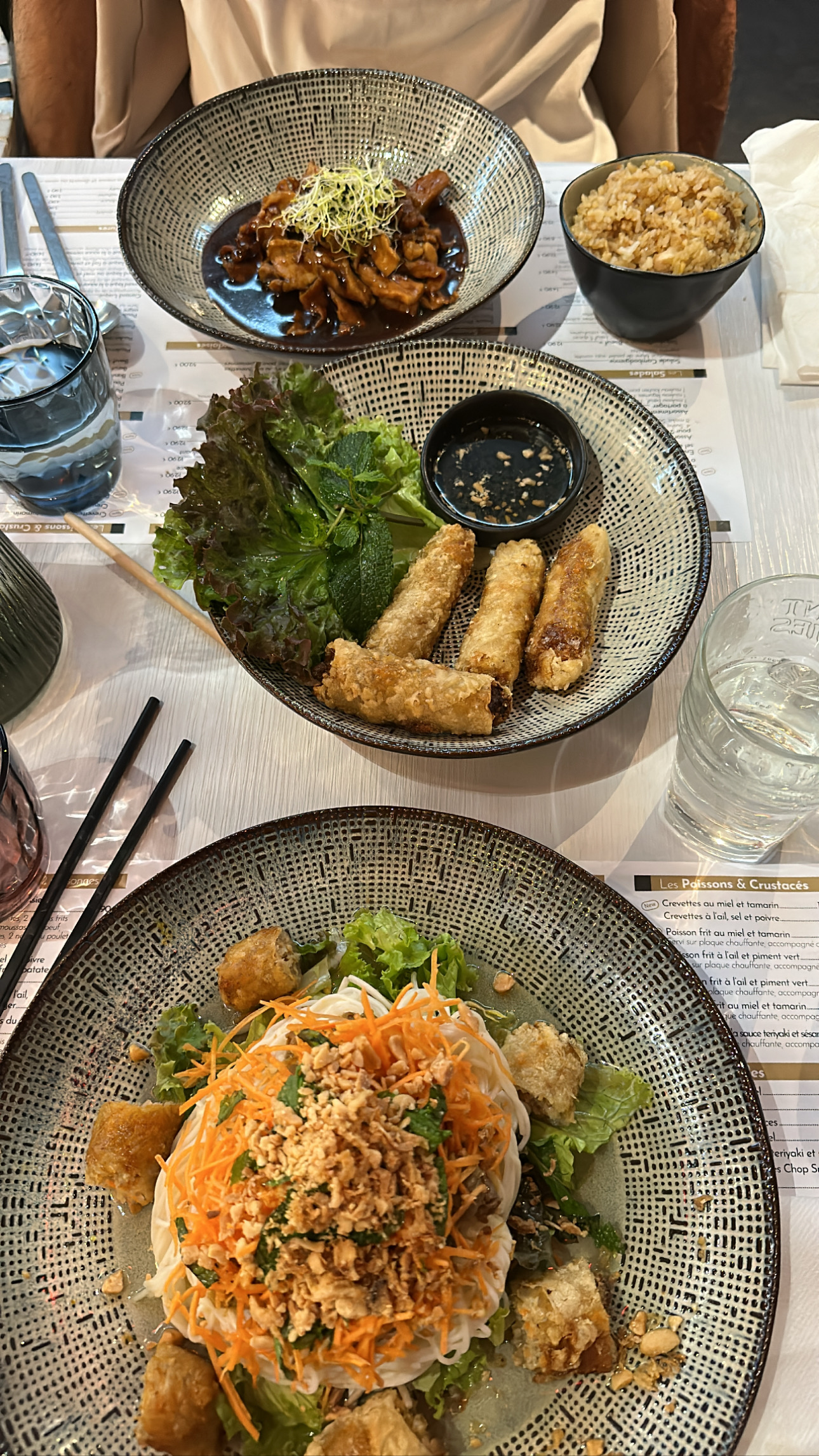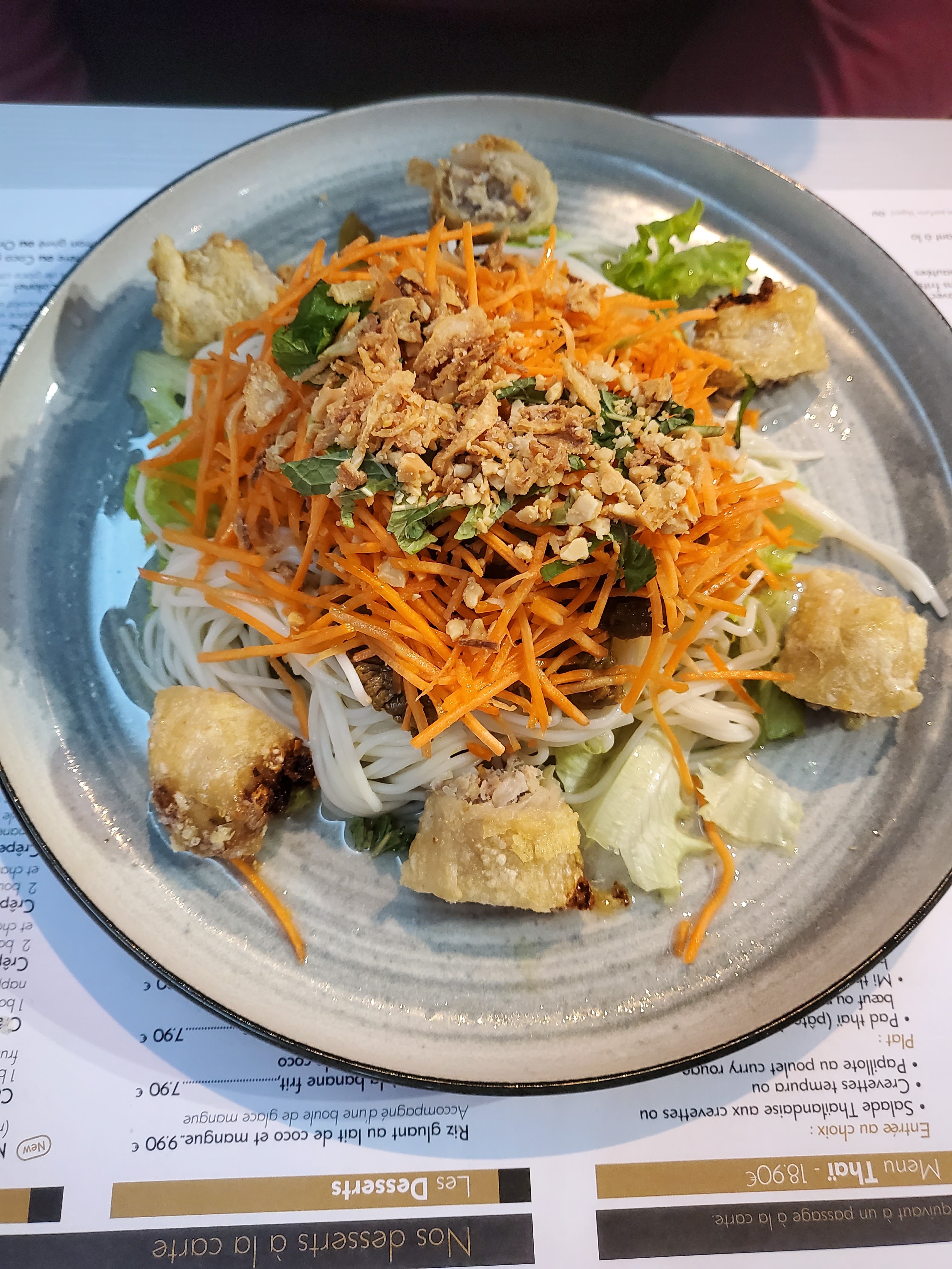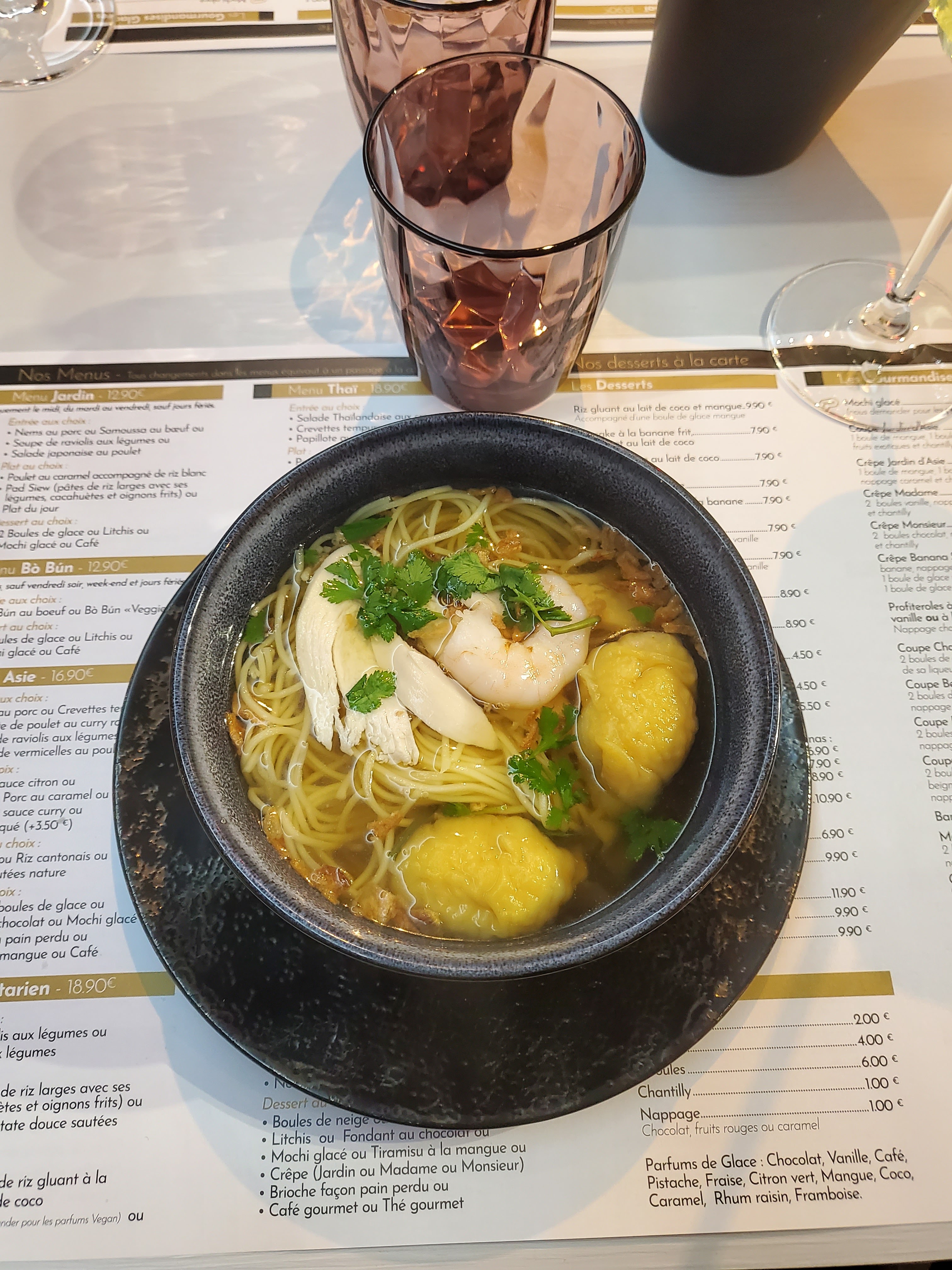 Magnifique cadre on voyage en Asie, et les plats délicieux,j'ai pris le menu vietnamien, à 19,90 et mon chéri un autre menu car ils font des menus le soir à prix très correct et délicieux,je me suis régalée, allez y en plus service rapide et très agréable avec le sourire,personnel et patron très sympathique au top.