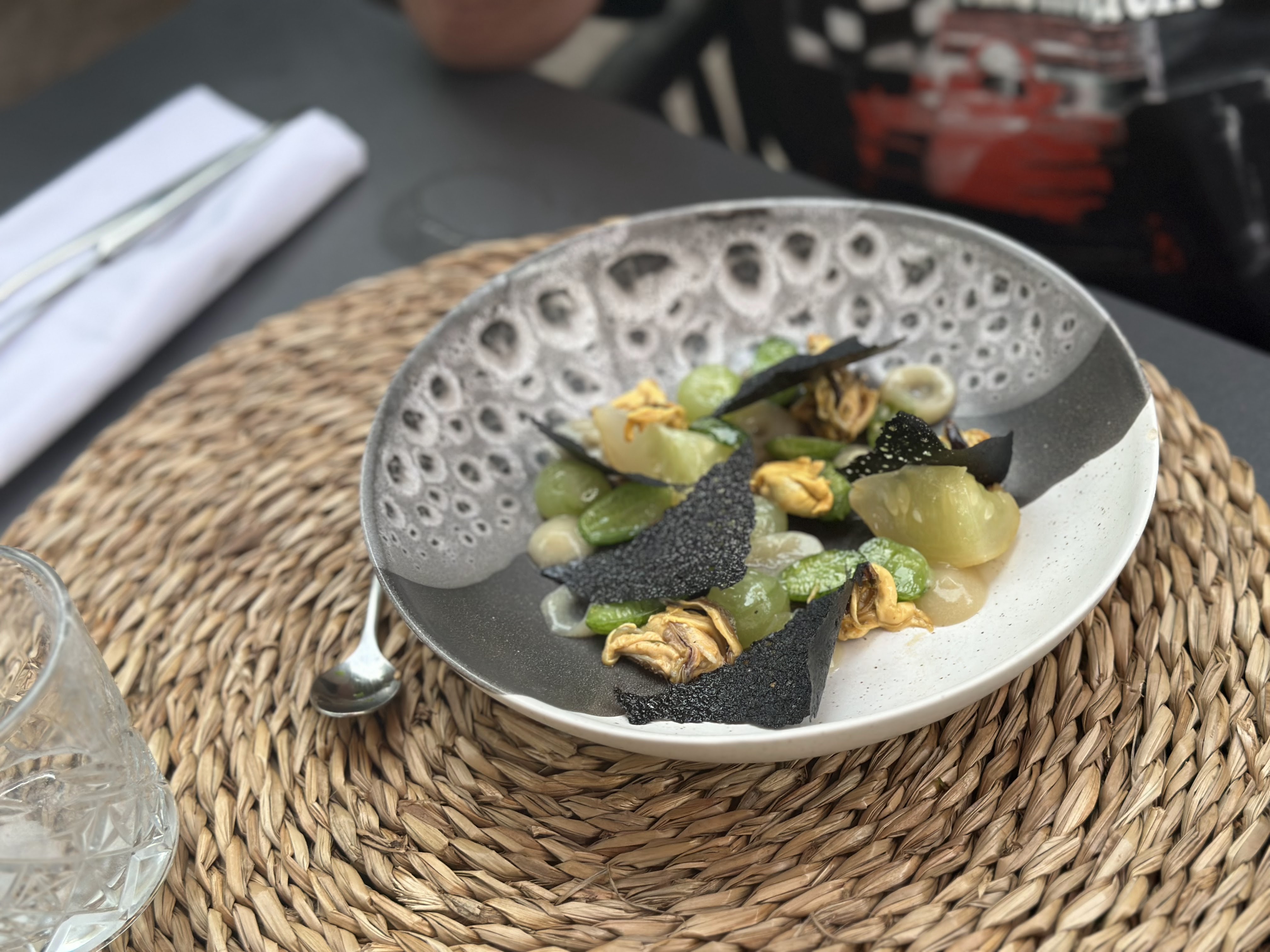 Nous nous attendions à une expérience extraordinaire mais malheureusement nous avons été déçus… Une heure d’attente pour avoir notre premier verre, de l’eau servie après le plat, de l’attente entre les différentes assiettes... Niveau saveurs nous avons trouvés l’entrée et le plat assez fades, manque de peps et peu accessible (du poulpe servi pour la partie poisson…). Pour un menu à 38€ j’étais assez déçue de me retrouver avec des pâtes à la ricotta dans mon assiette 😅 Le dessert était en revanche très bon. Nous vous souhaitons néanmoins bon courage et une très belle fin d’été.