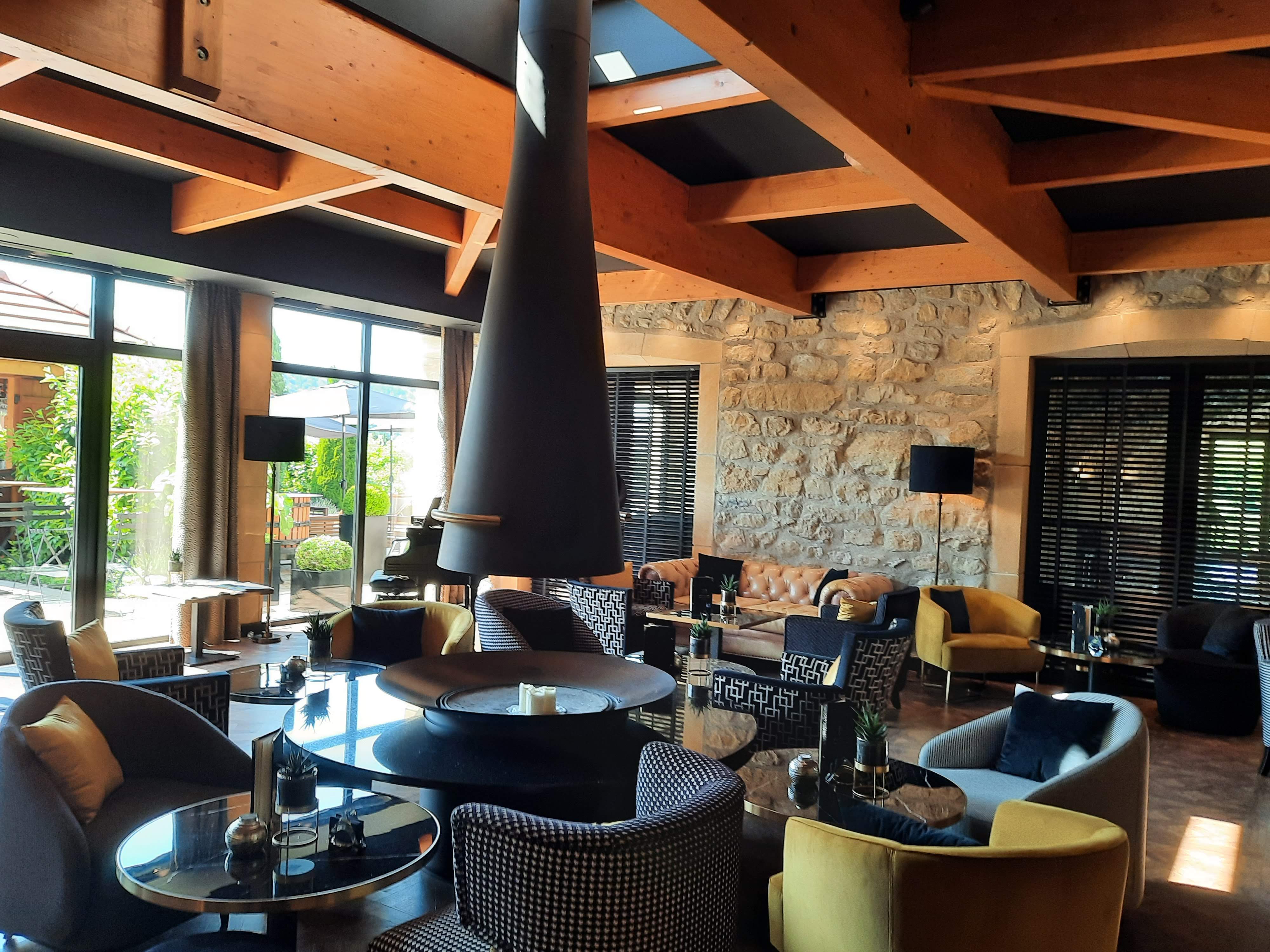 Ambiance unique, calme et ressourçante Vue sur le haras et en arrière plan, la forêt aux couleurs d'automne... Personnel très professionnel Très grand choix de boissons et cocktails au bar agrémenté de son pianiste A faire