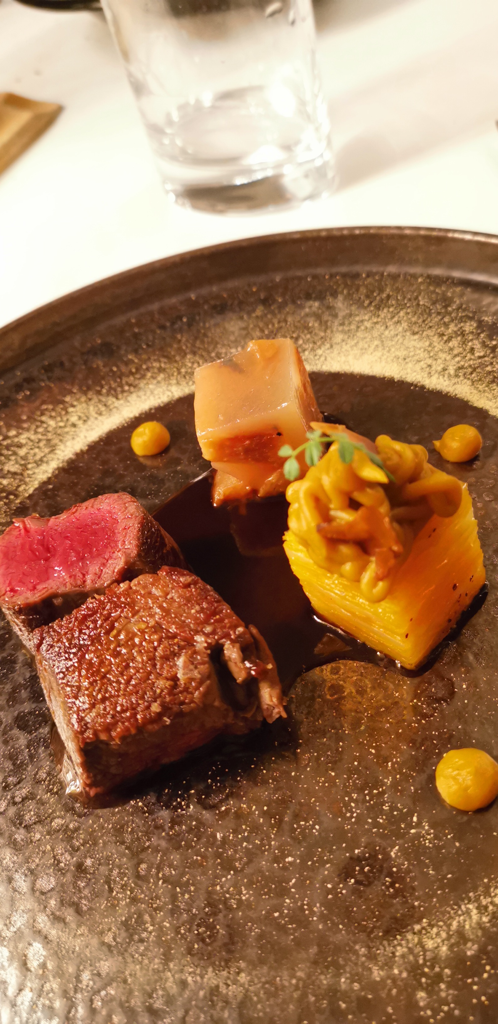 Toujours aussi réussi ambiance feutrée lumière tamisée, belles pierres, des petits plats dans les grands, des goûts et des saveurs, de bons vins, un service impeccable , une progression de bon aloi, des noms de plats peut-être alambiqués, mais si c'est le prix à payer pour dîner dans un restaurant réellement gastronomique... en tout cas il faut dépêcher d'y retourner avant qu il obtienne une étoile et que les prix soient moins abordables... mais même plus cher nous reviendrons 🎂😊