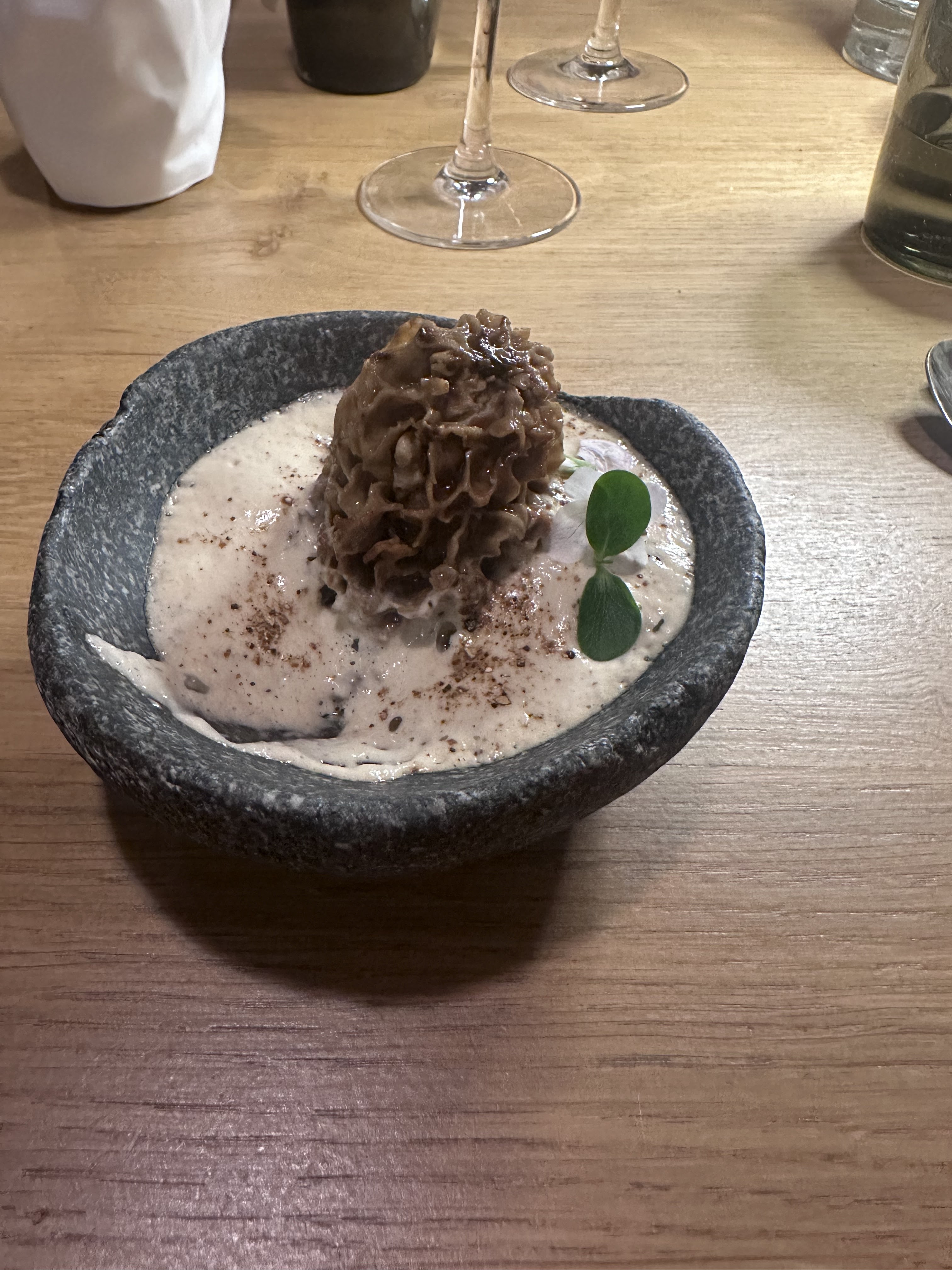🫠 Endroit absolument adorable. Accueilli par le propriétaire et rapidement installé, vous vous retrouverez dans un restaurant parfaitement décoré et si spacieux que vous aurez l'impression de dîner chez des amis proches. Et la NOURRITURE ! Nous avons apprécié un repas de six plats plein de saveurs et de surprises. Excellente sélection de vins et le canard est à tomber par terre. Assurez-vous de réserver tôt car c'est le restaurant le plus branché de cette petite ville et il est réservé plusieurs jours, voire plusieurs semaines à l'avance. Recommande fortement!